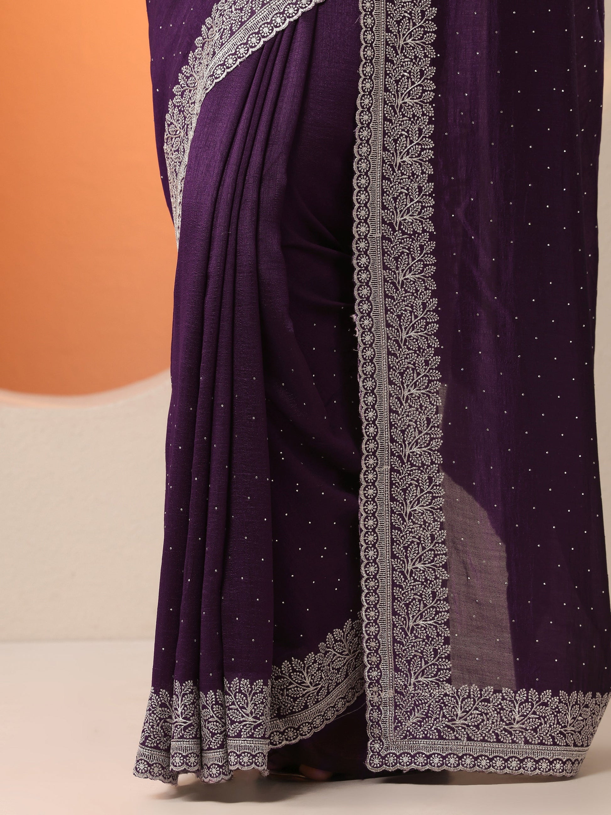 Purple Embellished Silk Blend Saree With Unstitched Blouse Piece