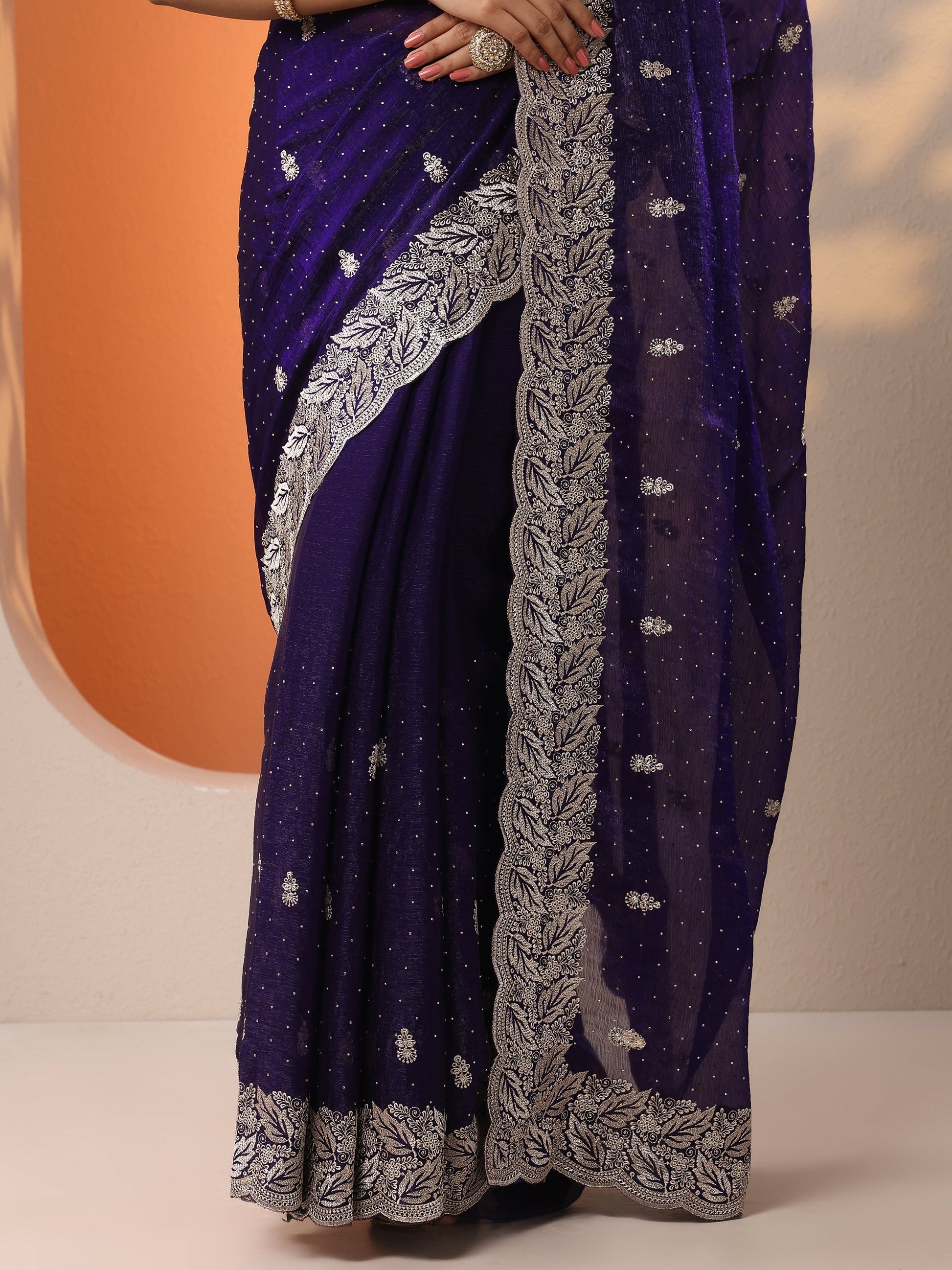 Purple Embellished Silk Blend Saree With Unstitched Blouse Piece