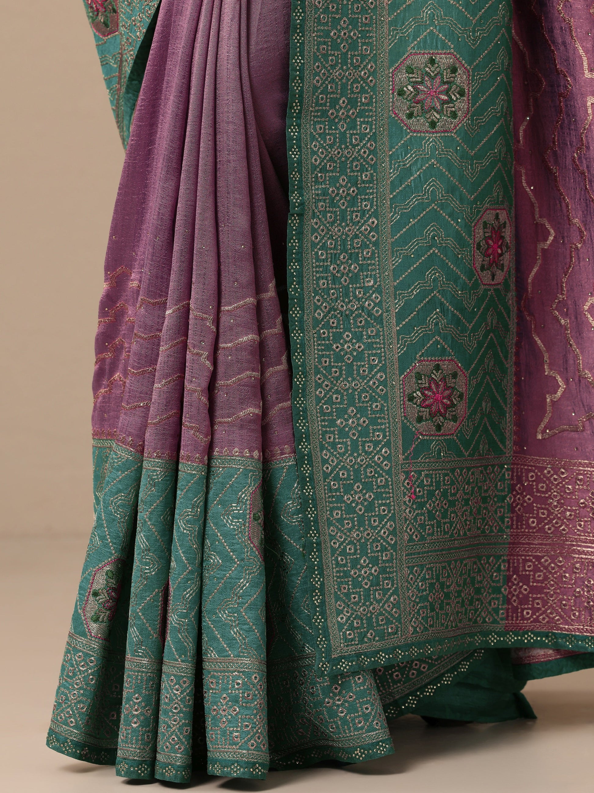 Purple Embellished Silk blend Saree With Unstitched Blouse Piece