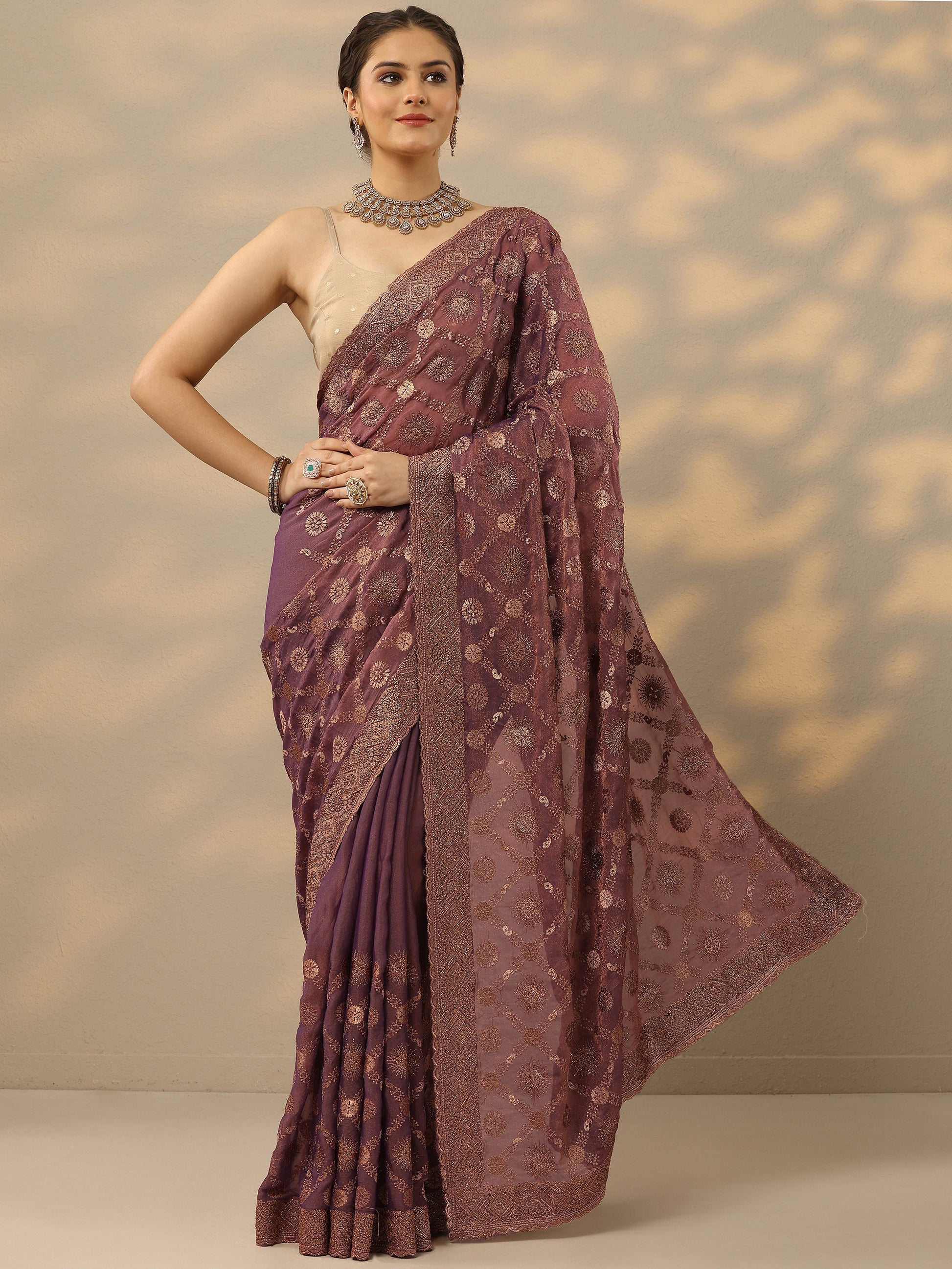 Purple Embroidered Banarasi Silk Blend Saree With Unstitched Blouse Piece
