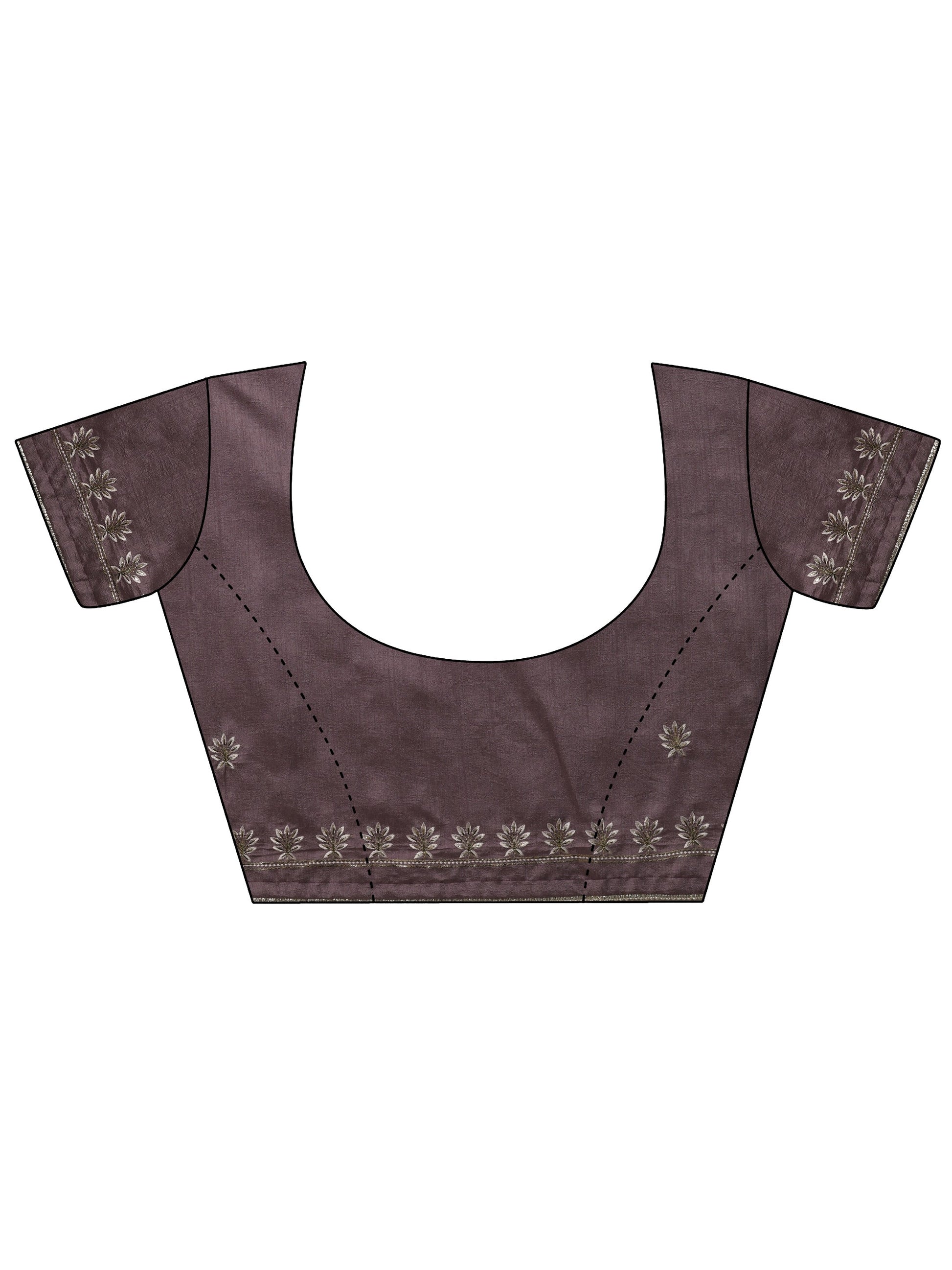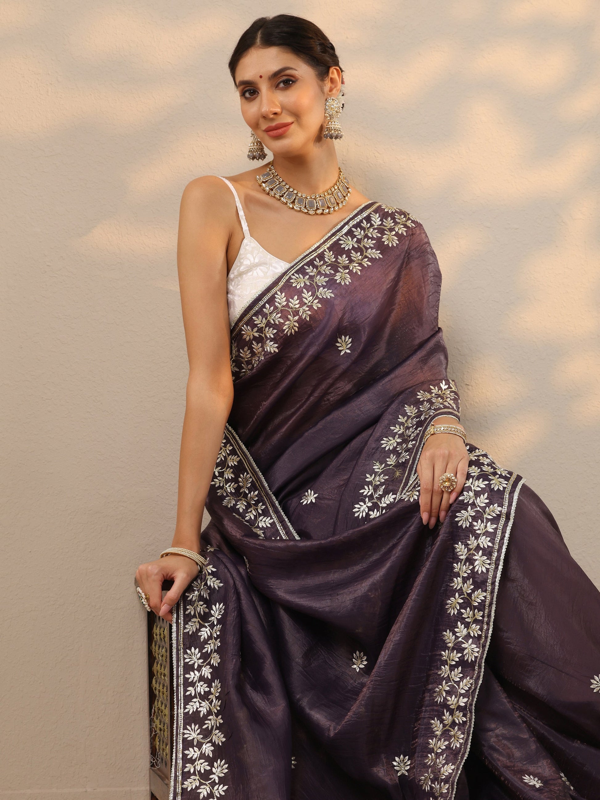 Purple Embroidered Organza Saree With Unstitched Blouse Piece