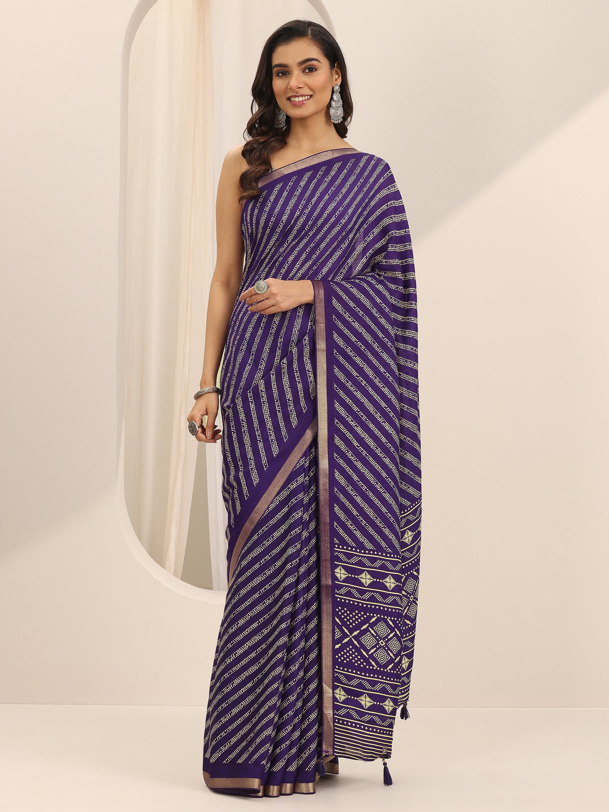 Our Purple printed Georgette saree features captivating Leheriya print. Complemented with a Blouse Piece. This charming saree is perfect for Semi Festive occasions.