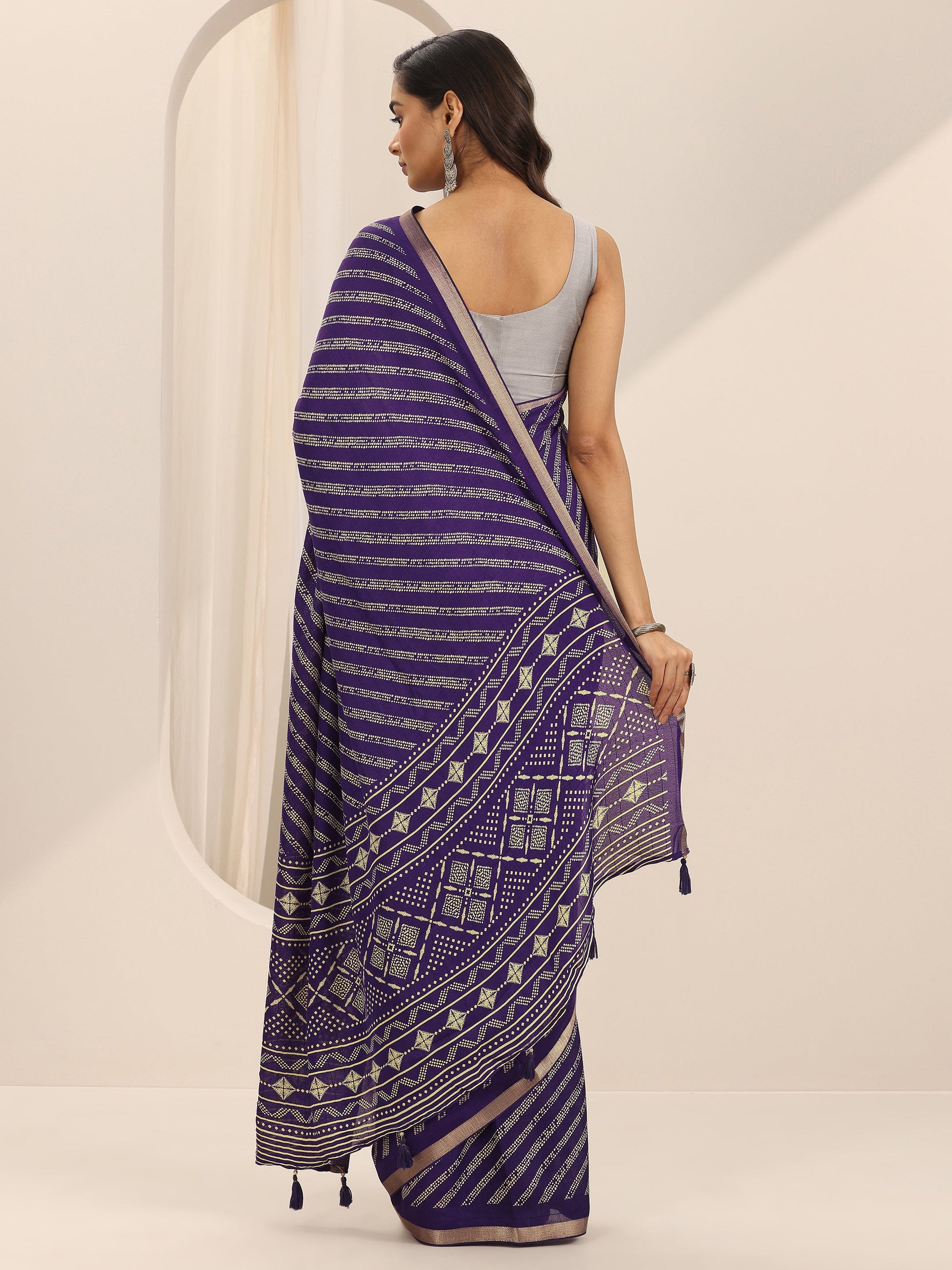 Purple Printed Georgette Saree With Unstitched Blouse Piece