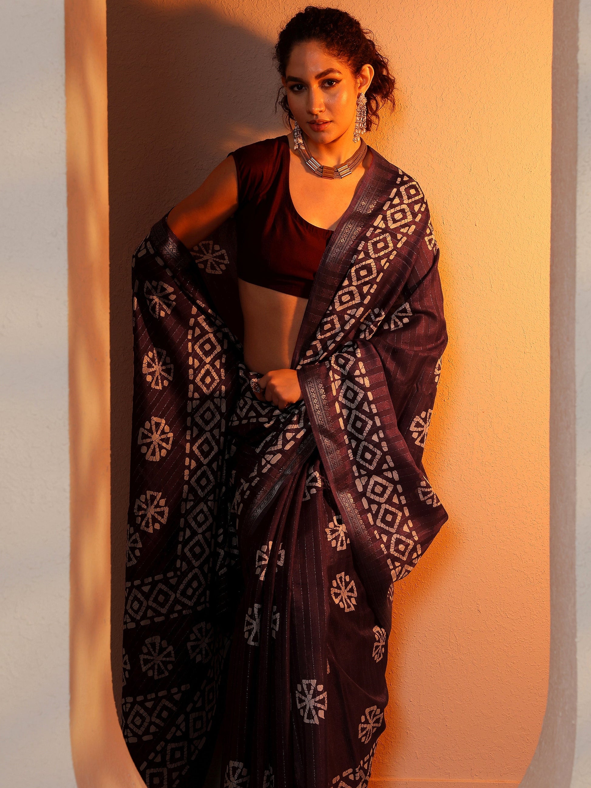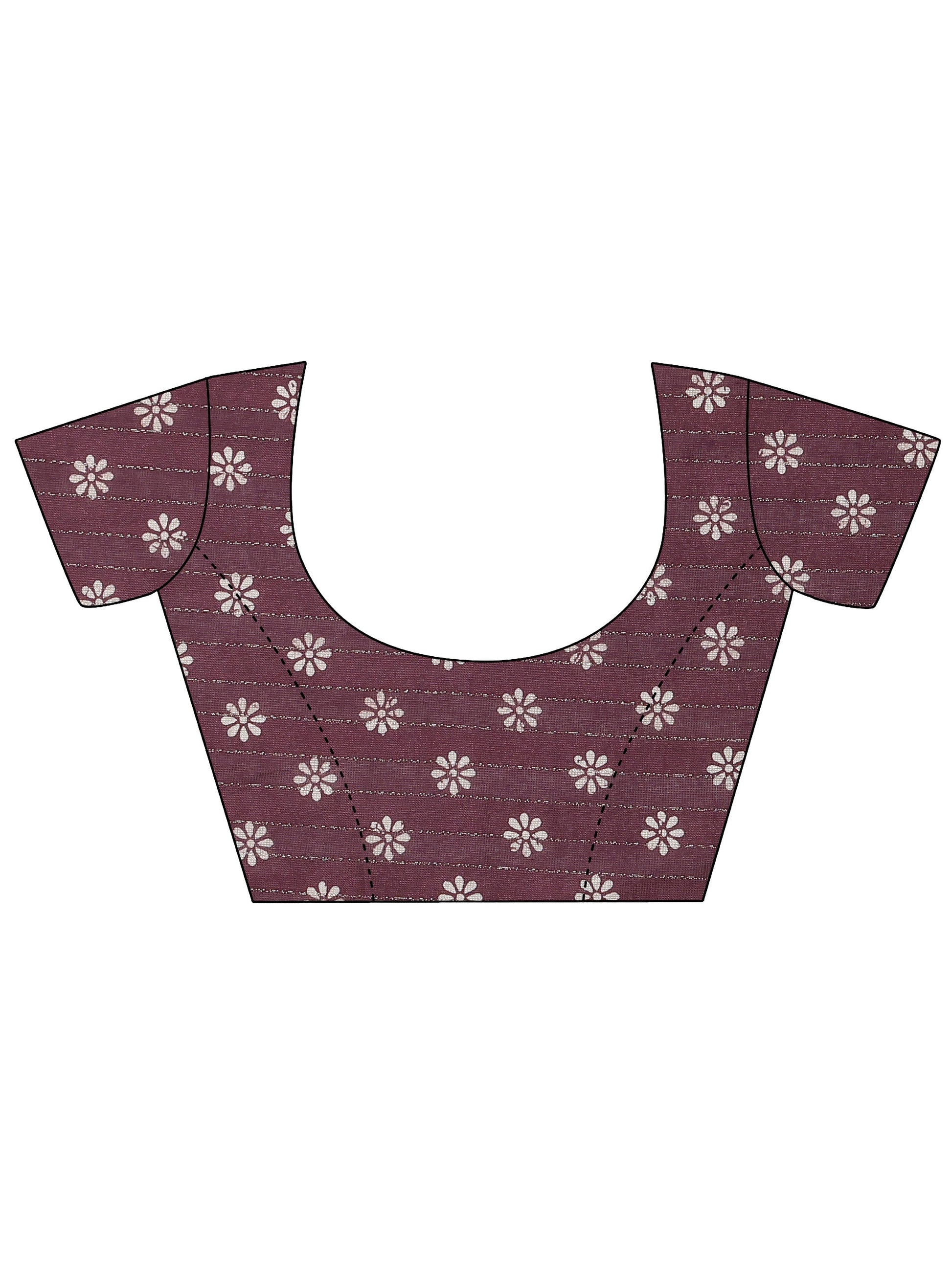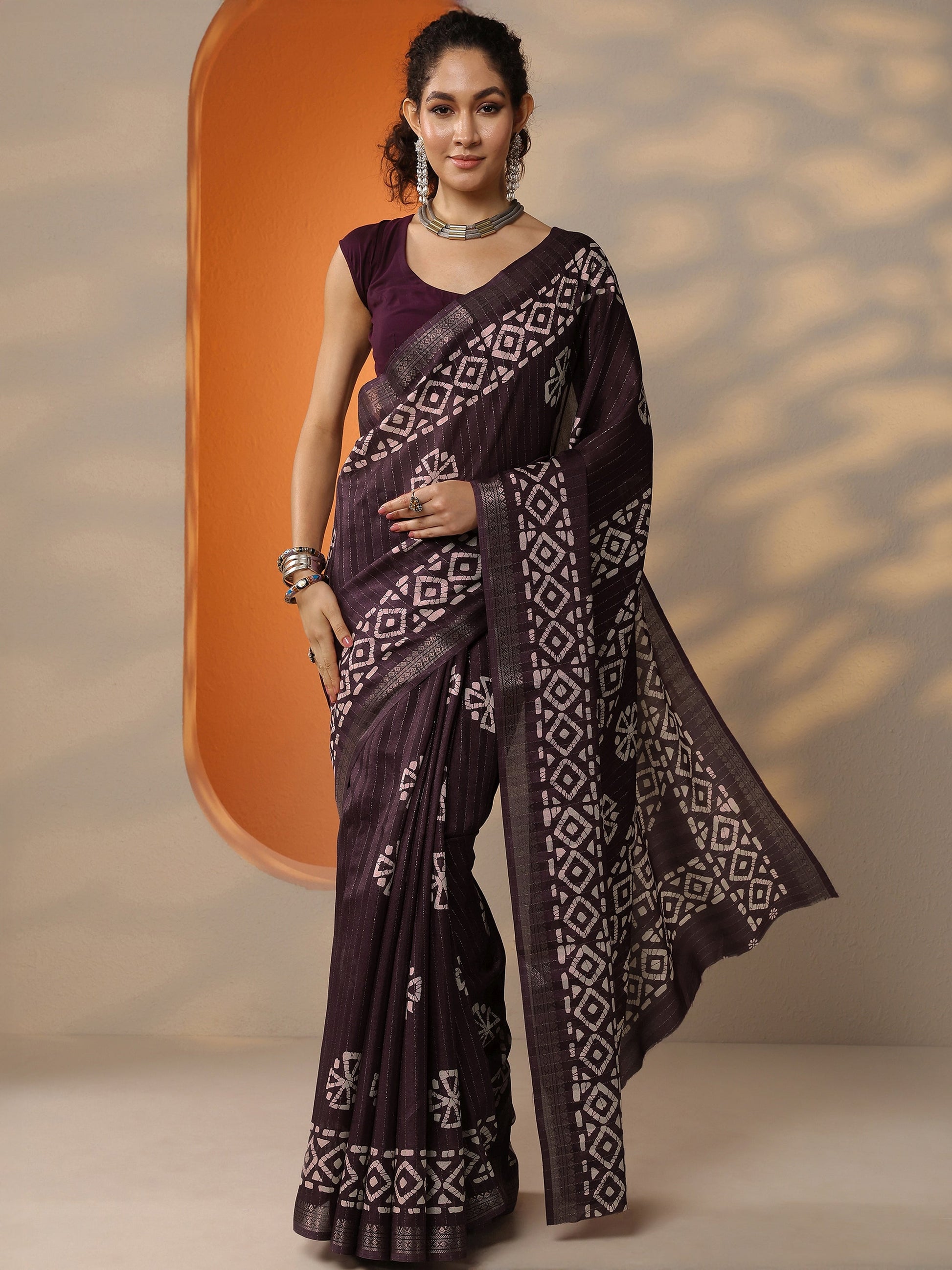 Purple Printed Silk Blend Saree With Unstitched Blouse Piece