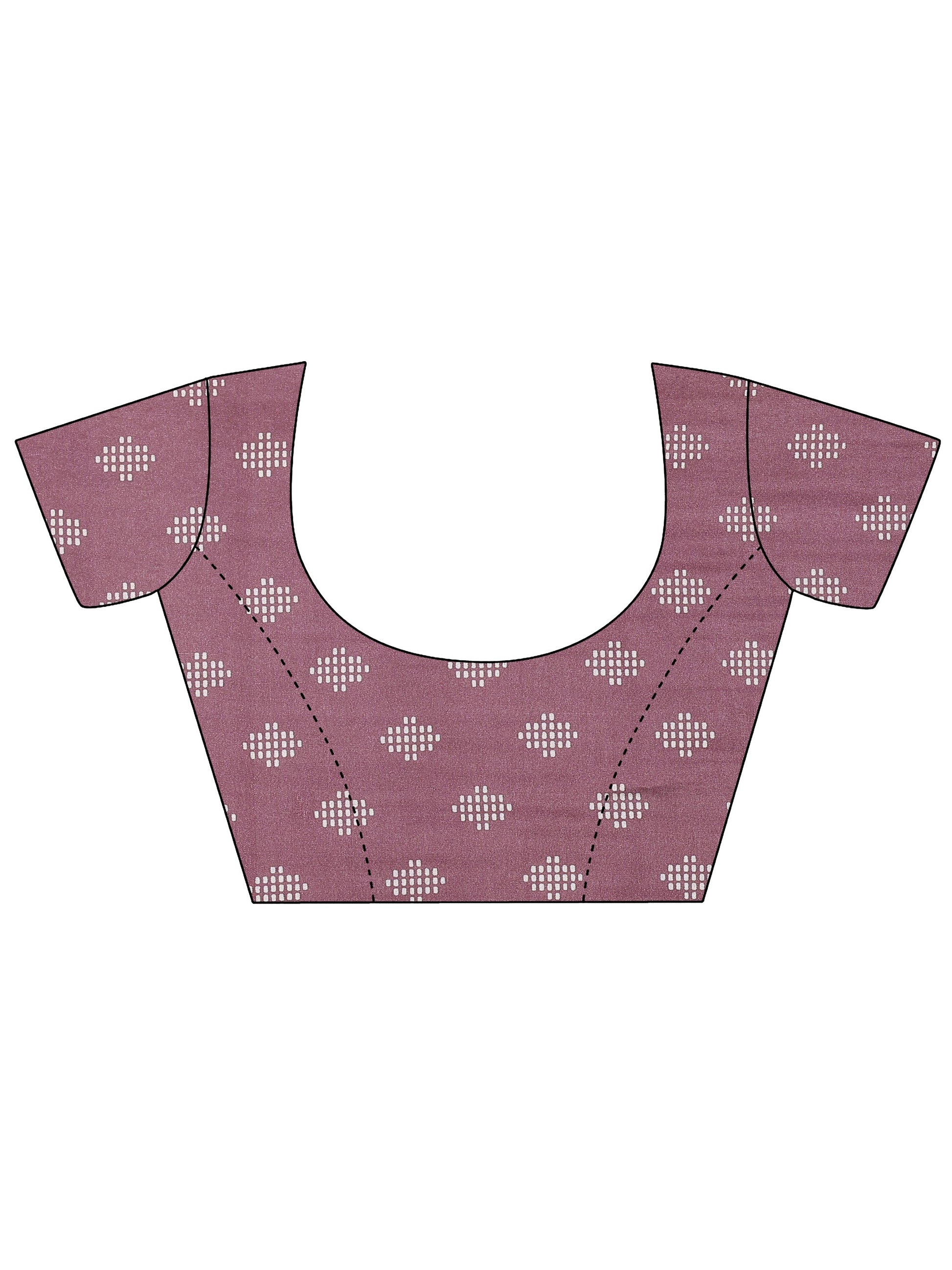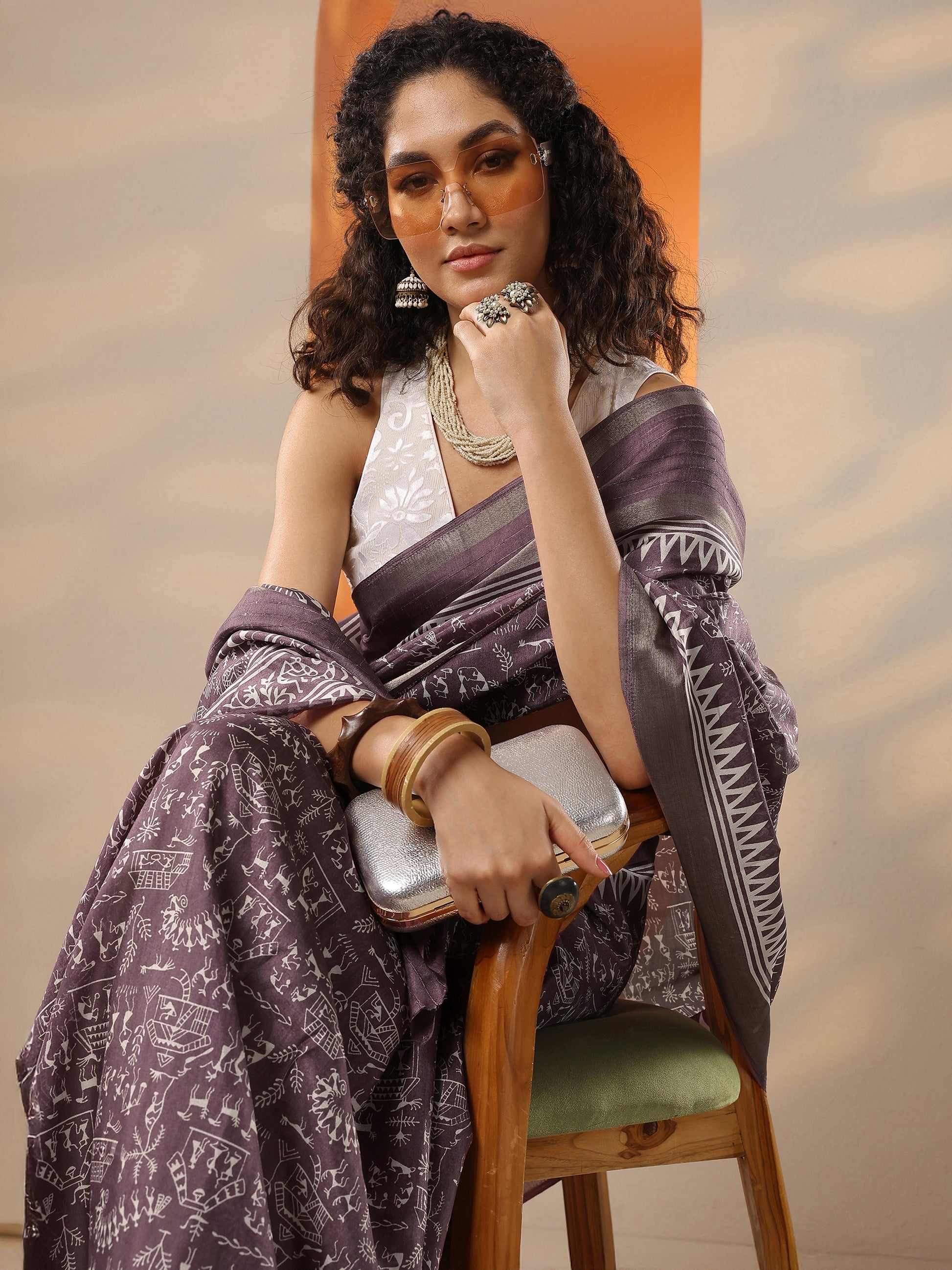 Purple Printed Silk Blend Saree With Unstitched Blouse Piece