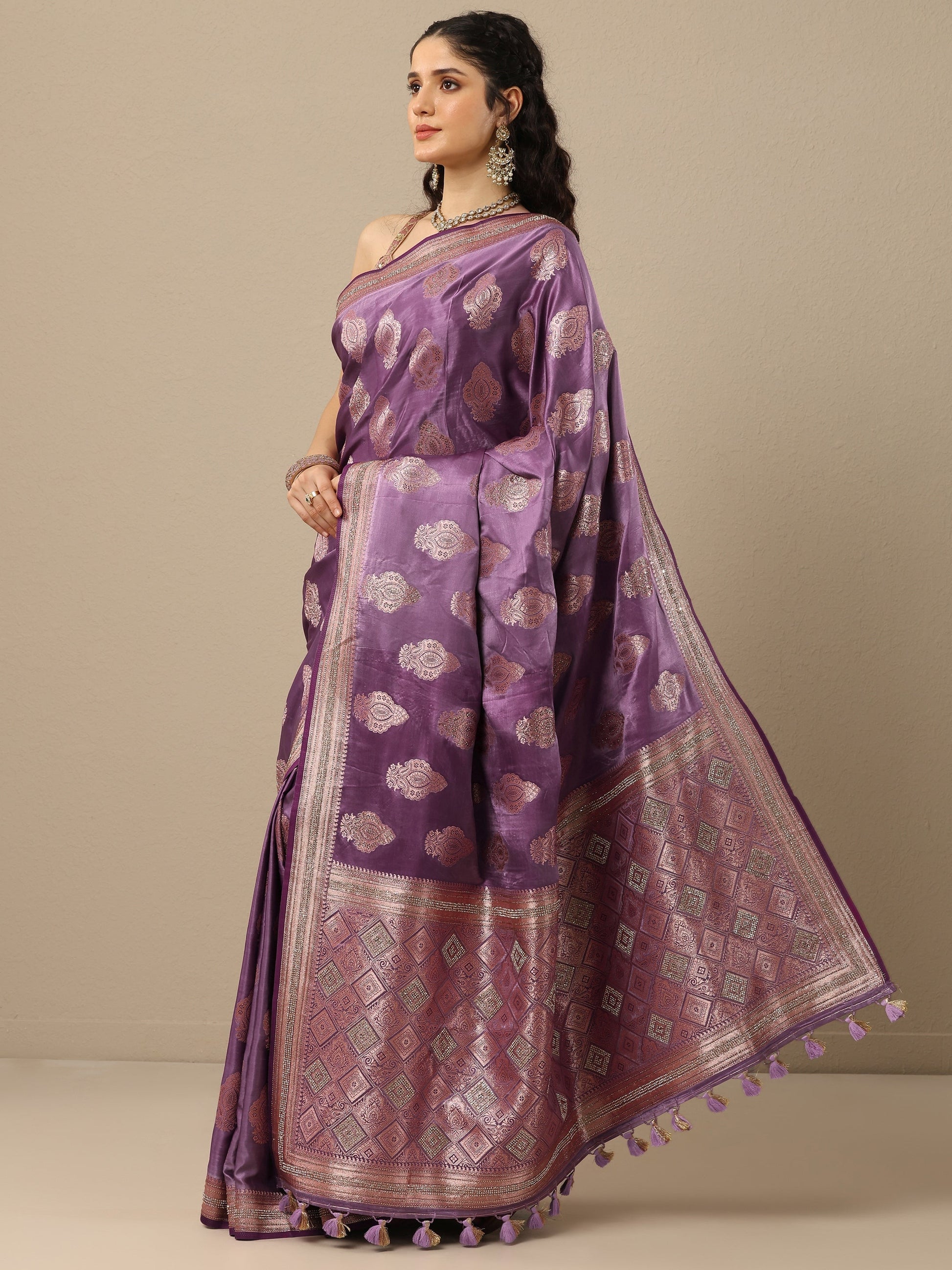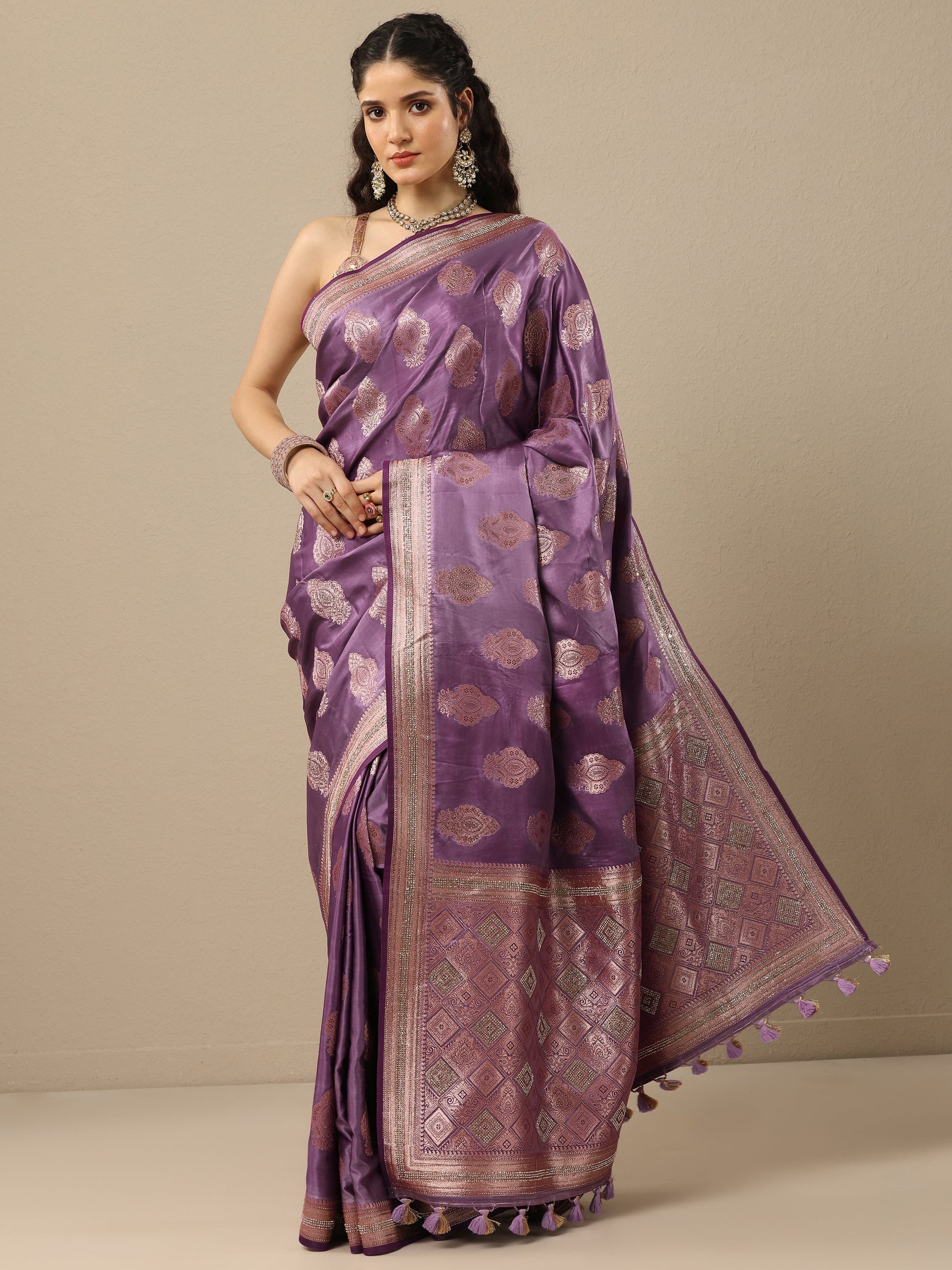 Purple Woven Design Banarasi Silk Blend Saree With Unstitched Blouse Piece
