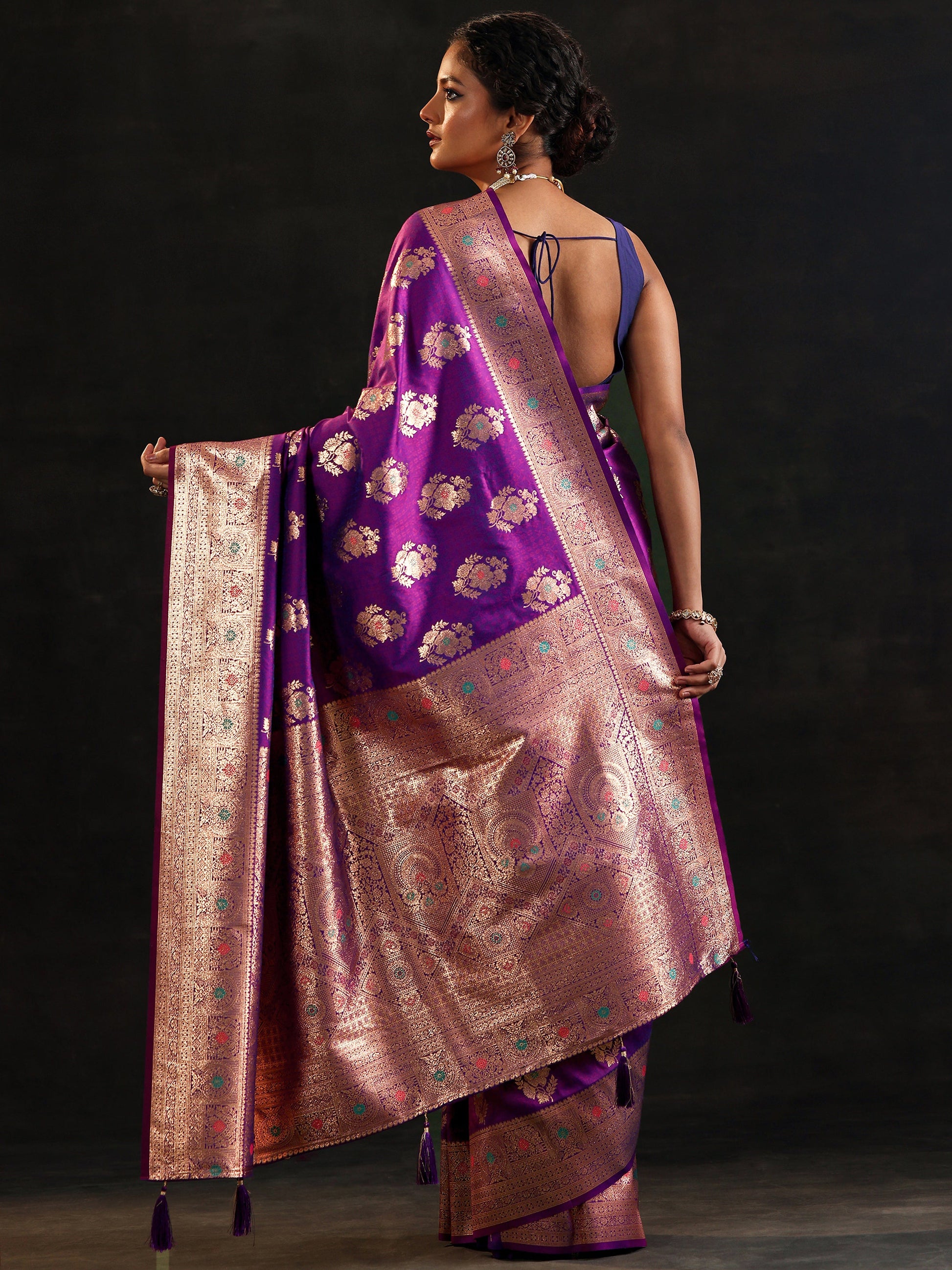Purple Woven Design Silk Blend Saree With Unstitched Blouse Piece
