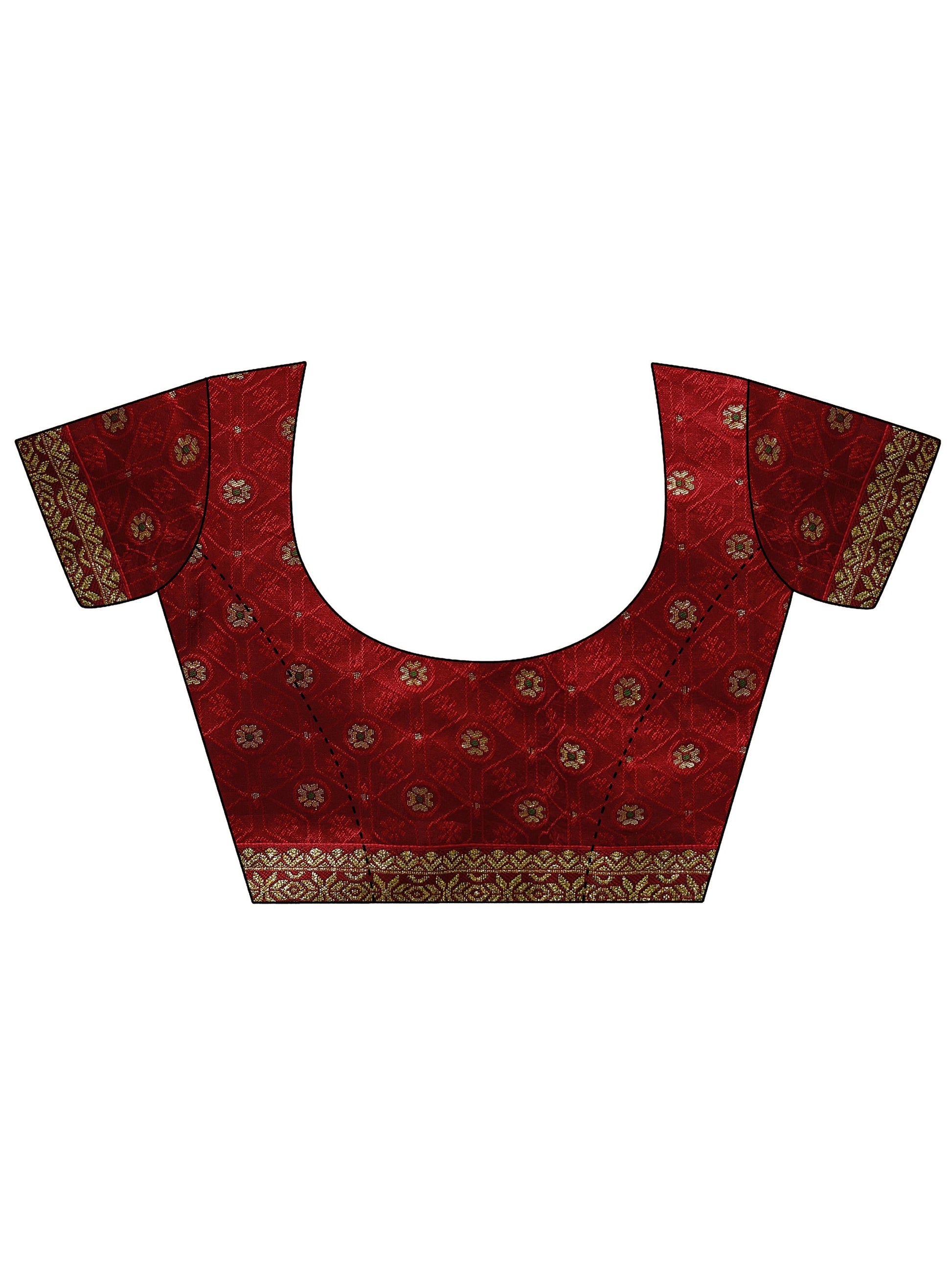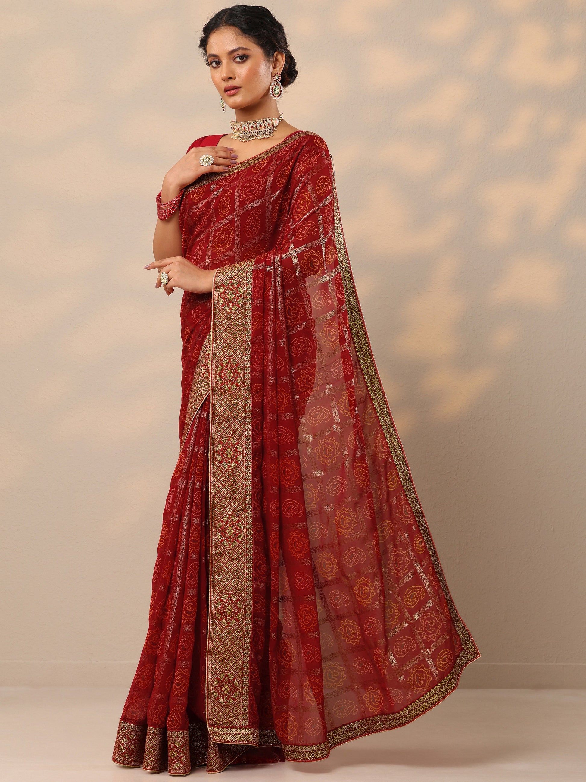 Red Bandhani Printed Georgette Saree With Unstitched Blouse Piece