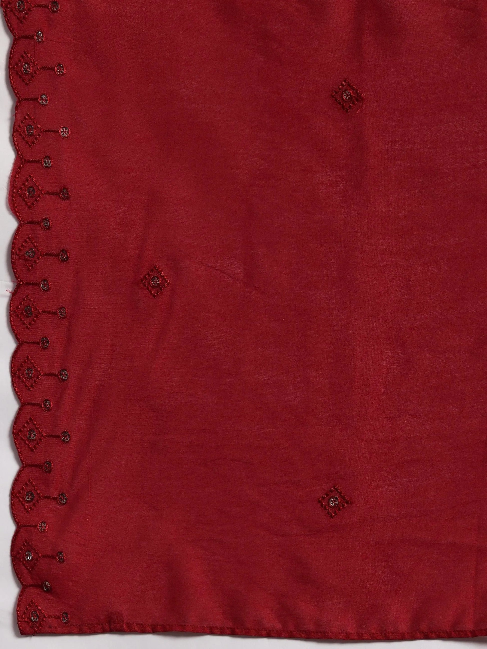 Red Embroidered Silk Blend Straight Suit With Dupatta