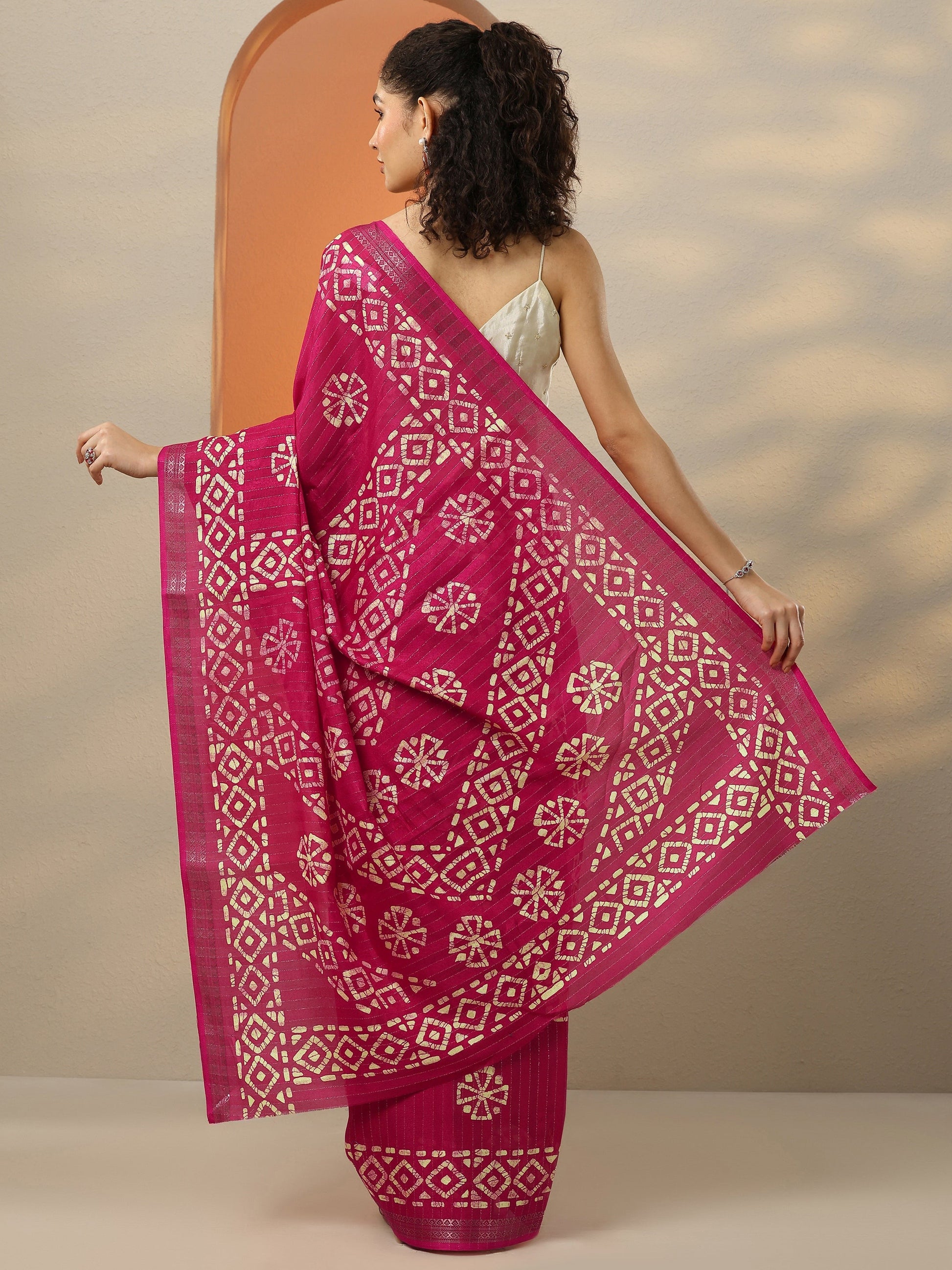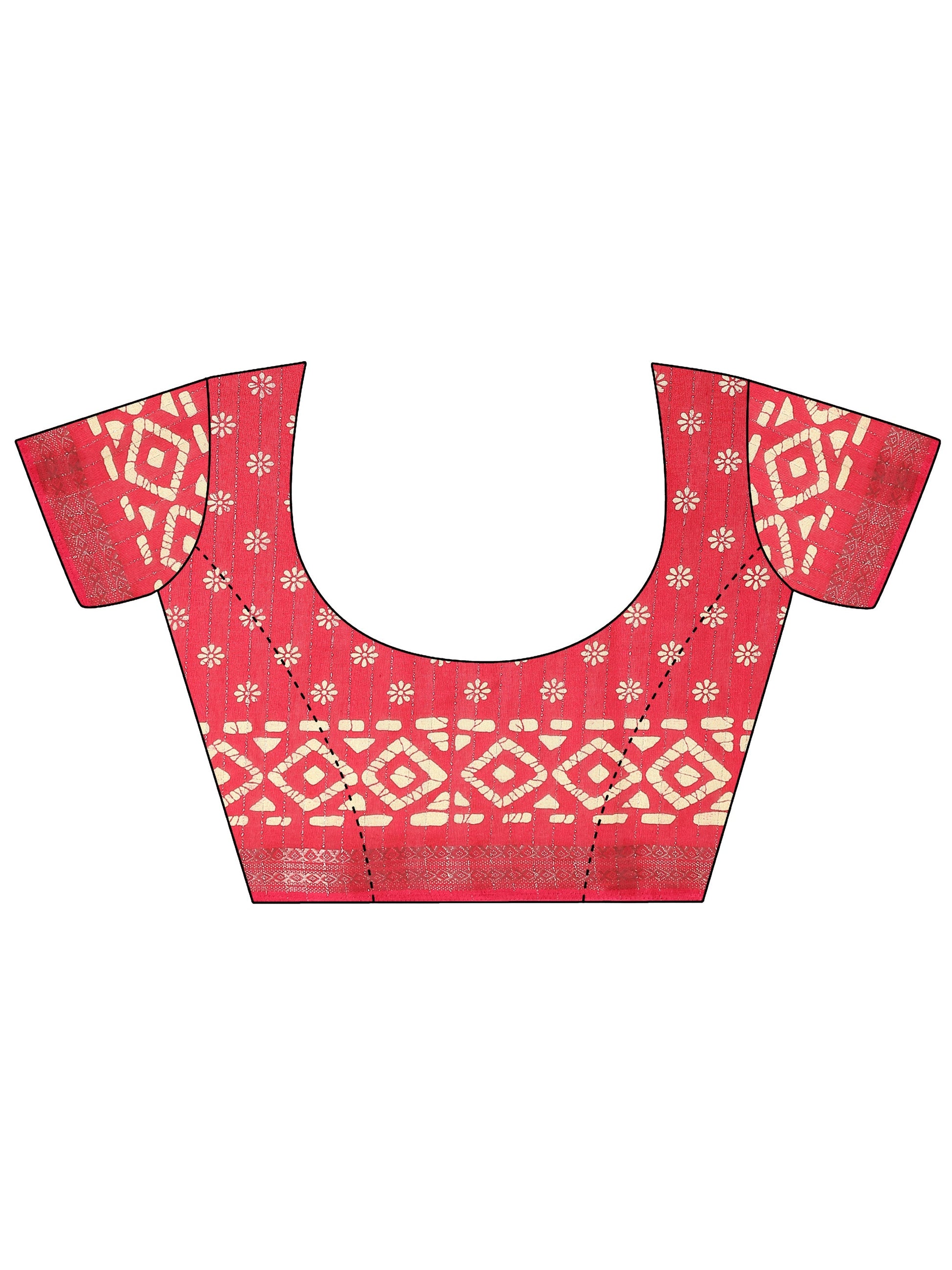Red Printed Silk Blend Saree With Unstitched Blouse Piece