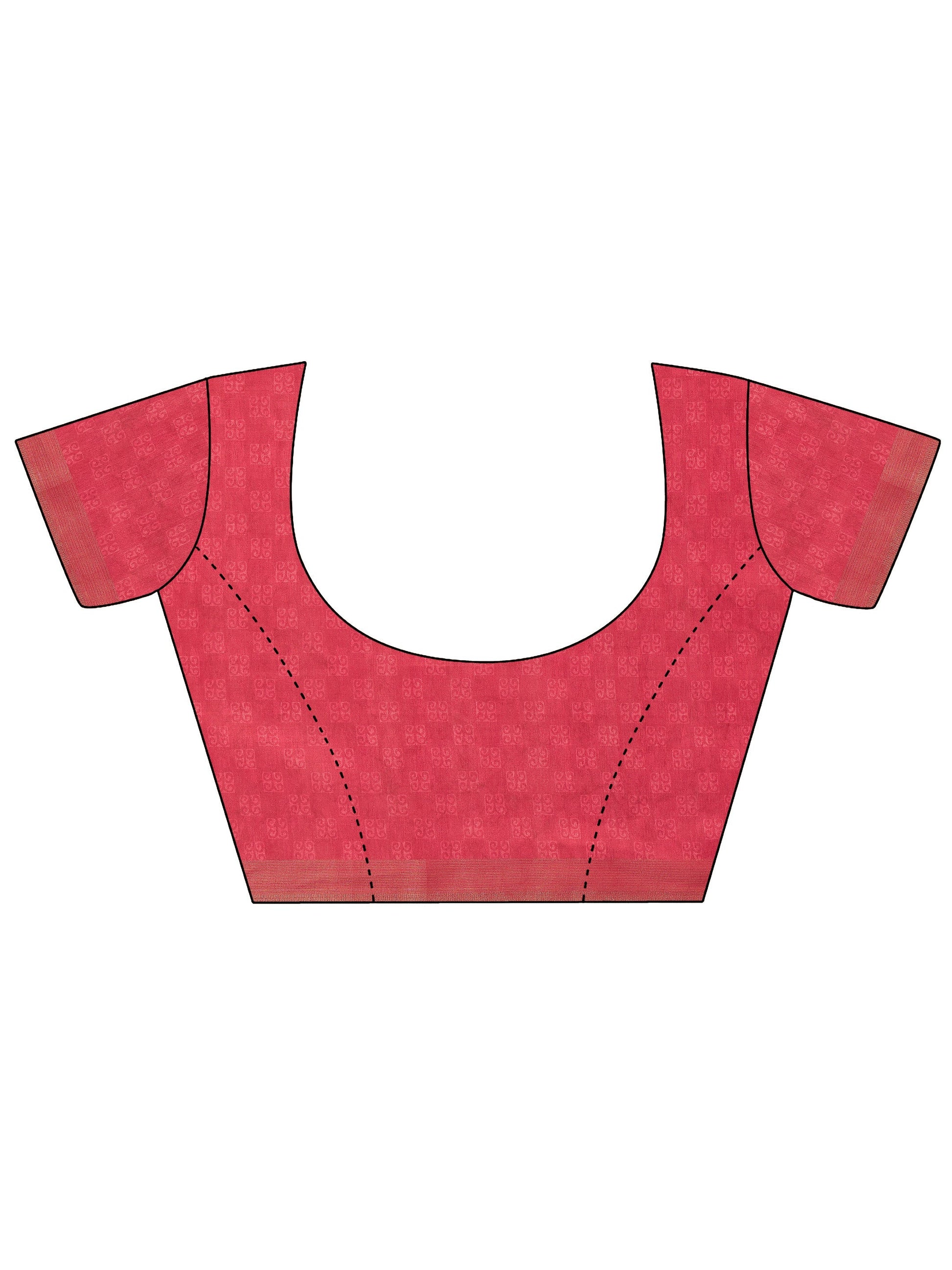 Red Printed Silk Blend Saree With Unstitched Blouse Piece