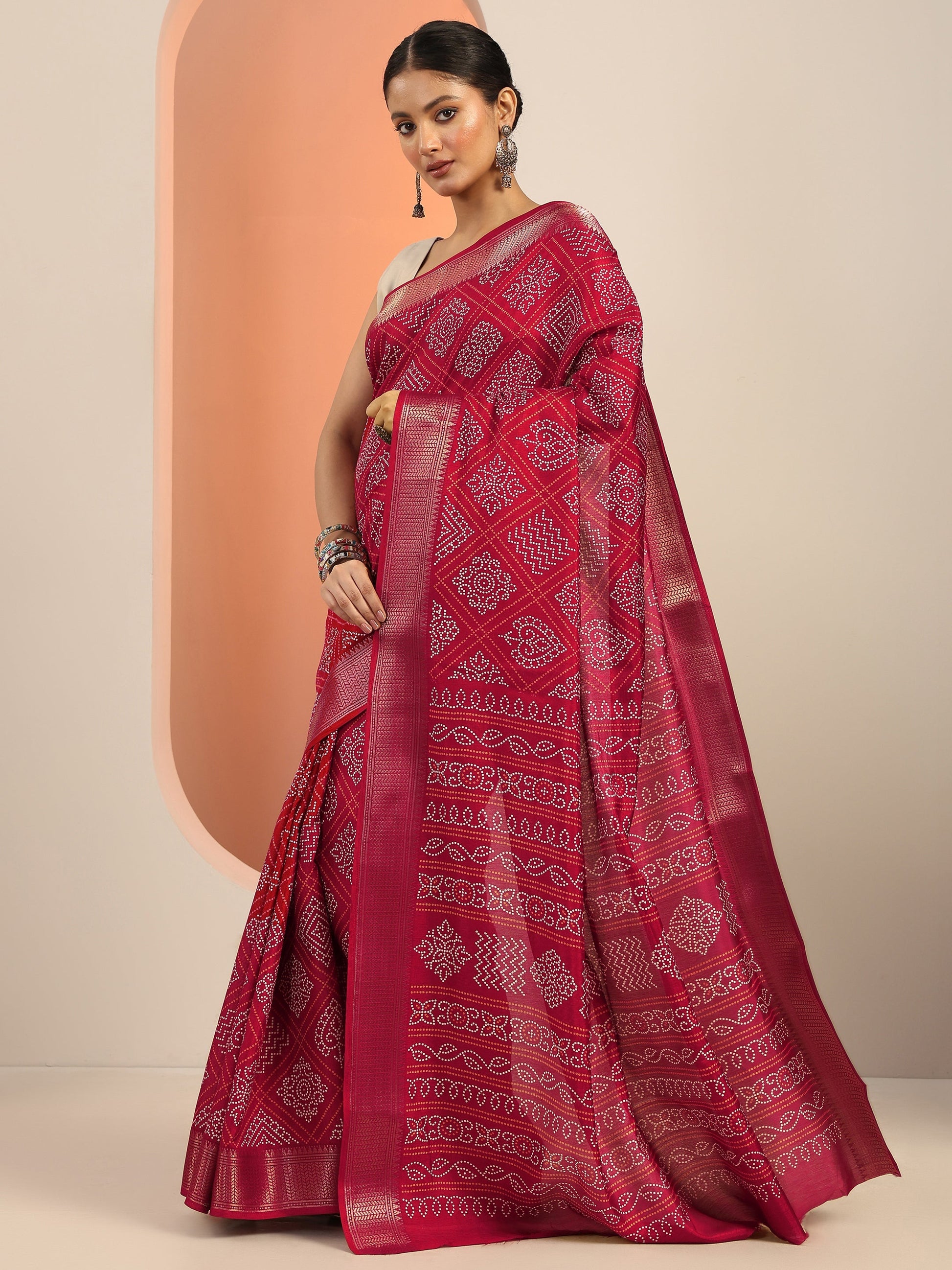 Our Red Printed Silk Blend Saree Features Captivating Bandhani Printed Design. Complemented With An Unstitched Blouse Piece. This Charming Saree Is Perfect For Festive Wear
