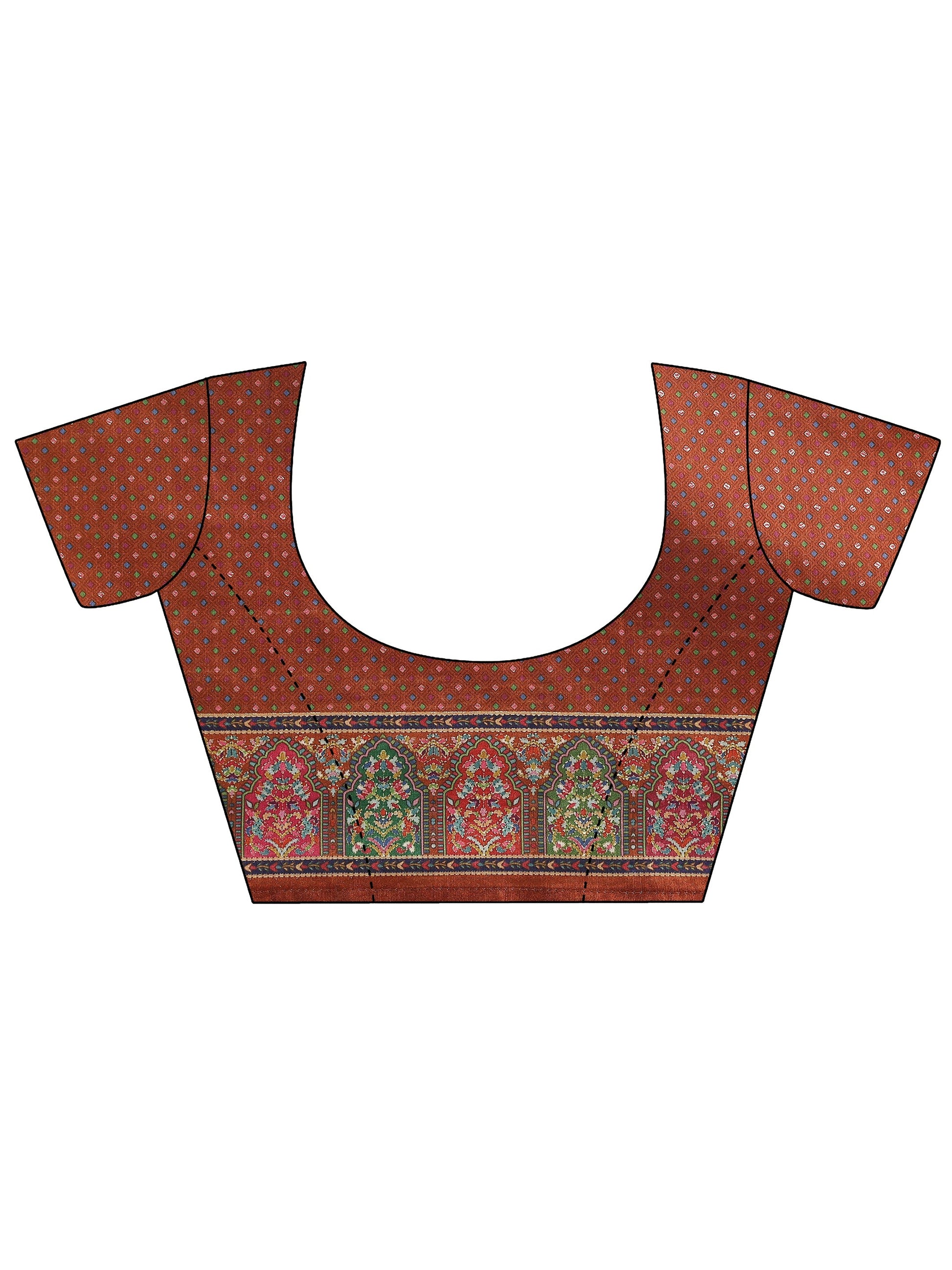 Red Printed Silk Blend Saree With Unstitched Blouse Piece