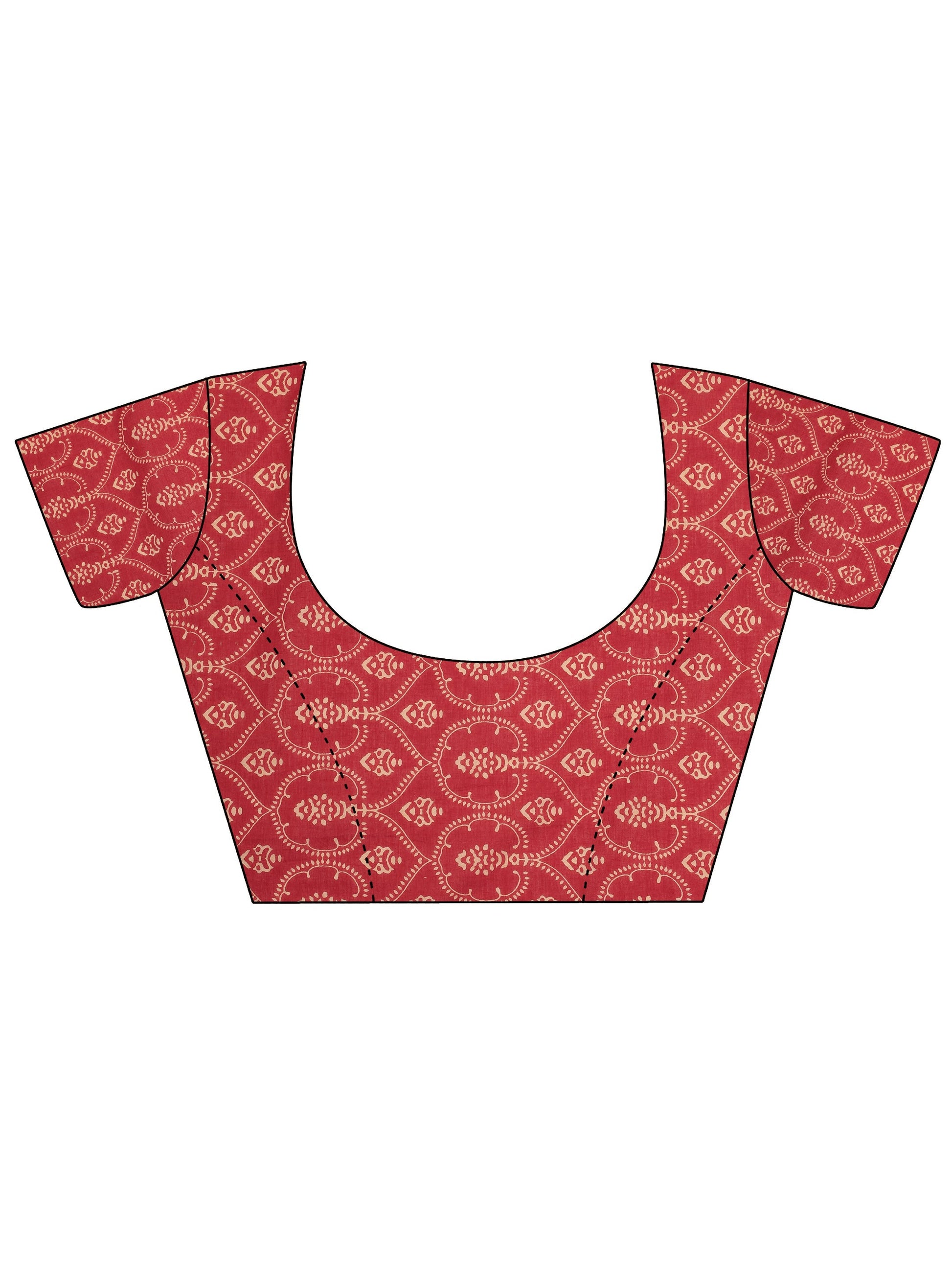 Red Solid Cotton Saree With Unstitched Blouse Piece