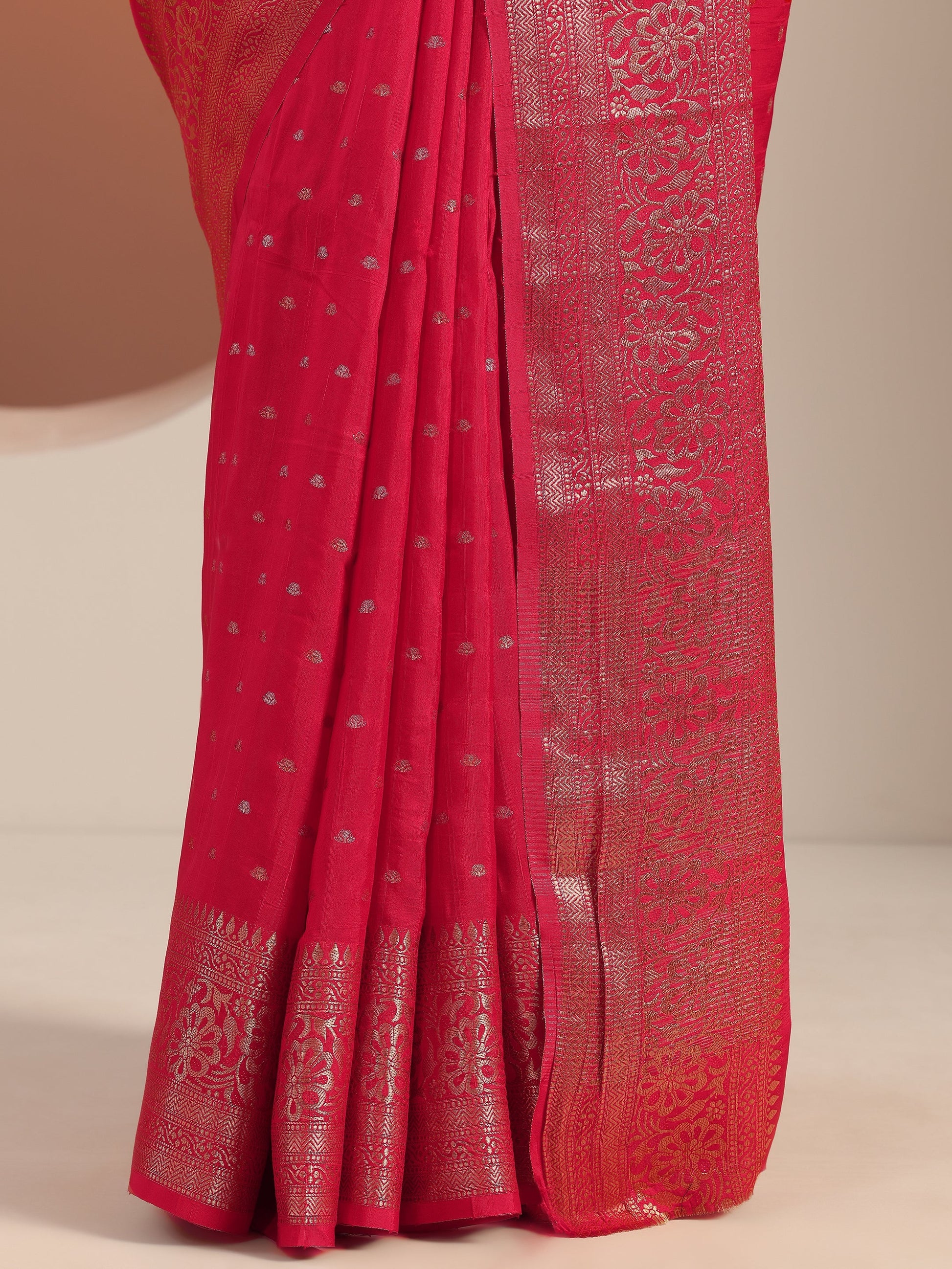 Red Woven Design Silk Blend Saree With Unstitched Blouse Piece