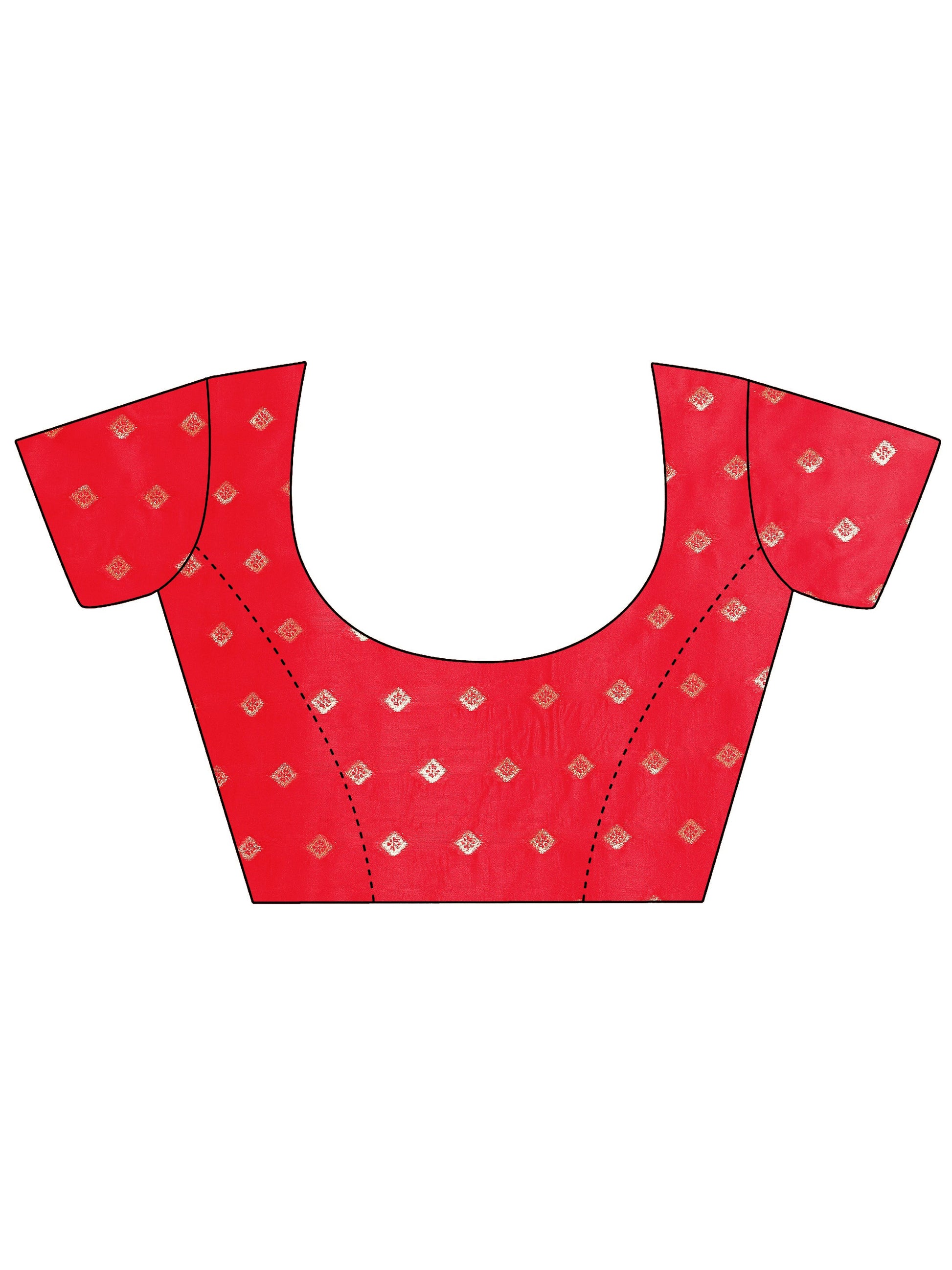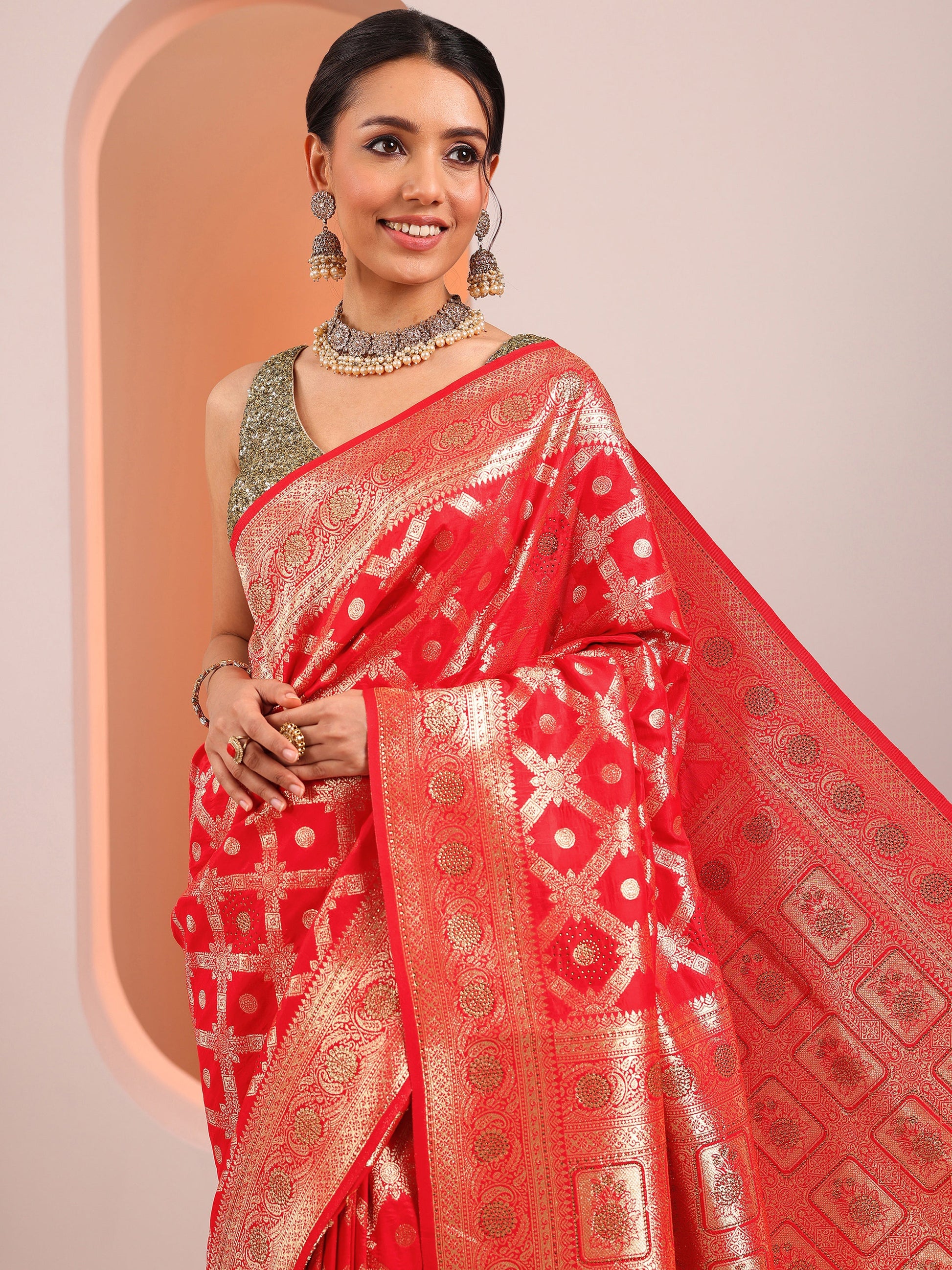 Red Woven Design Banarasi Silk Blend Saree With Unstitched Blouse Piece