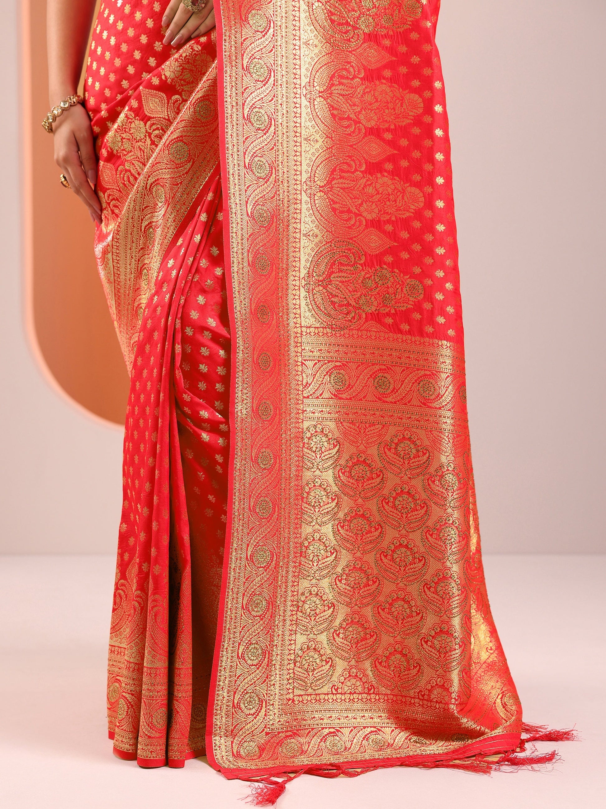 Red Woven Design Banarasi Silk Blend Saree With Unstitched Blouse Piece