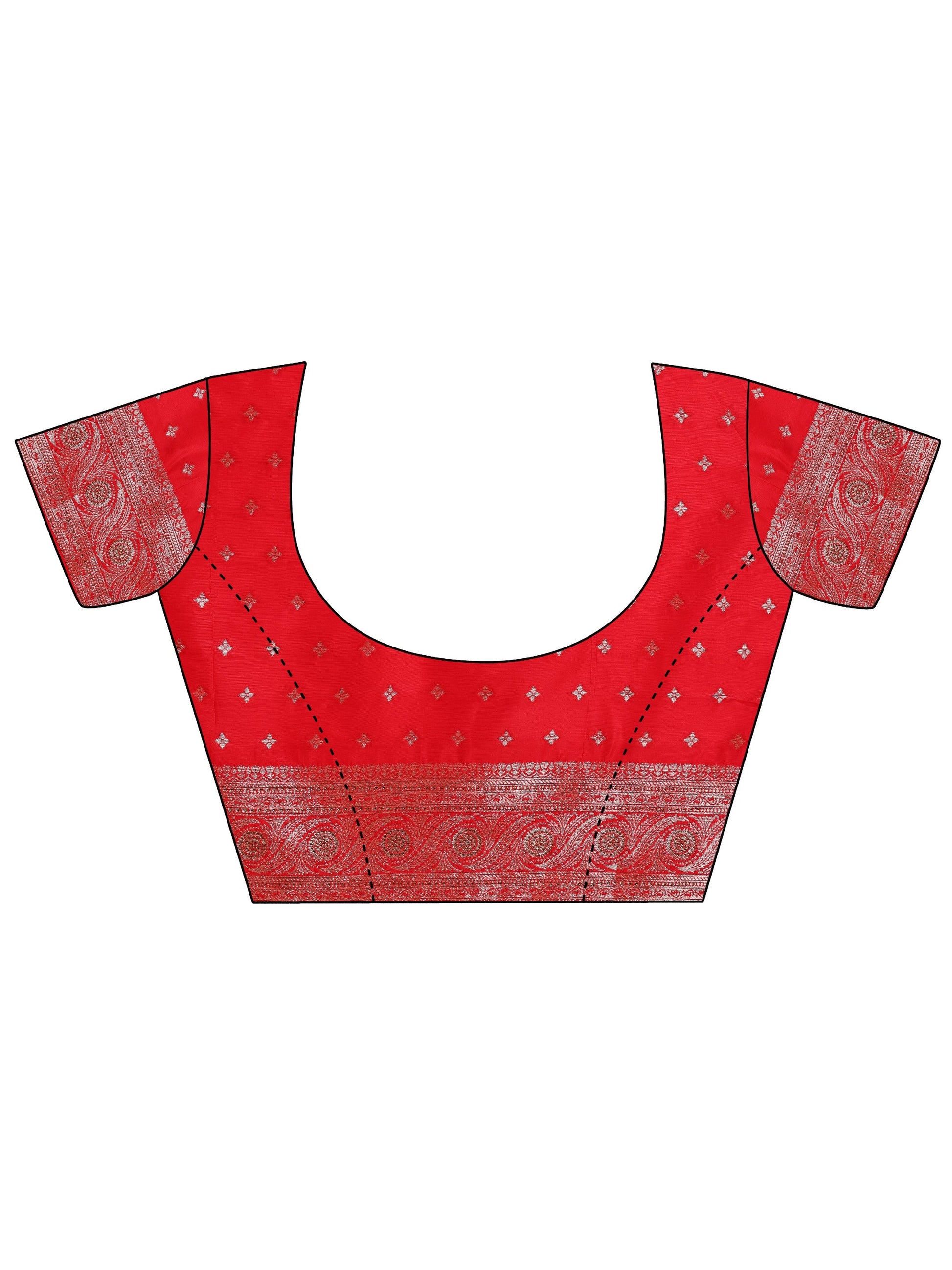 Our Red Woven Design Silk Blend Saree Features Captivating Traditional Motifs. Complemented With A Unstitched Blouse Piece. This Charming Saree Is Perfect For Festive Wear