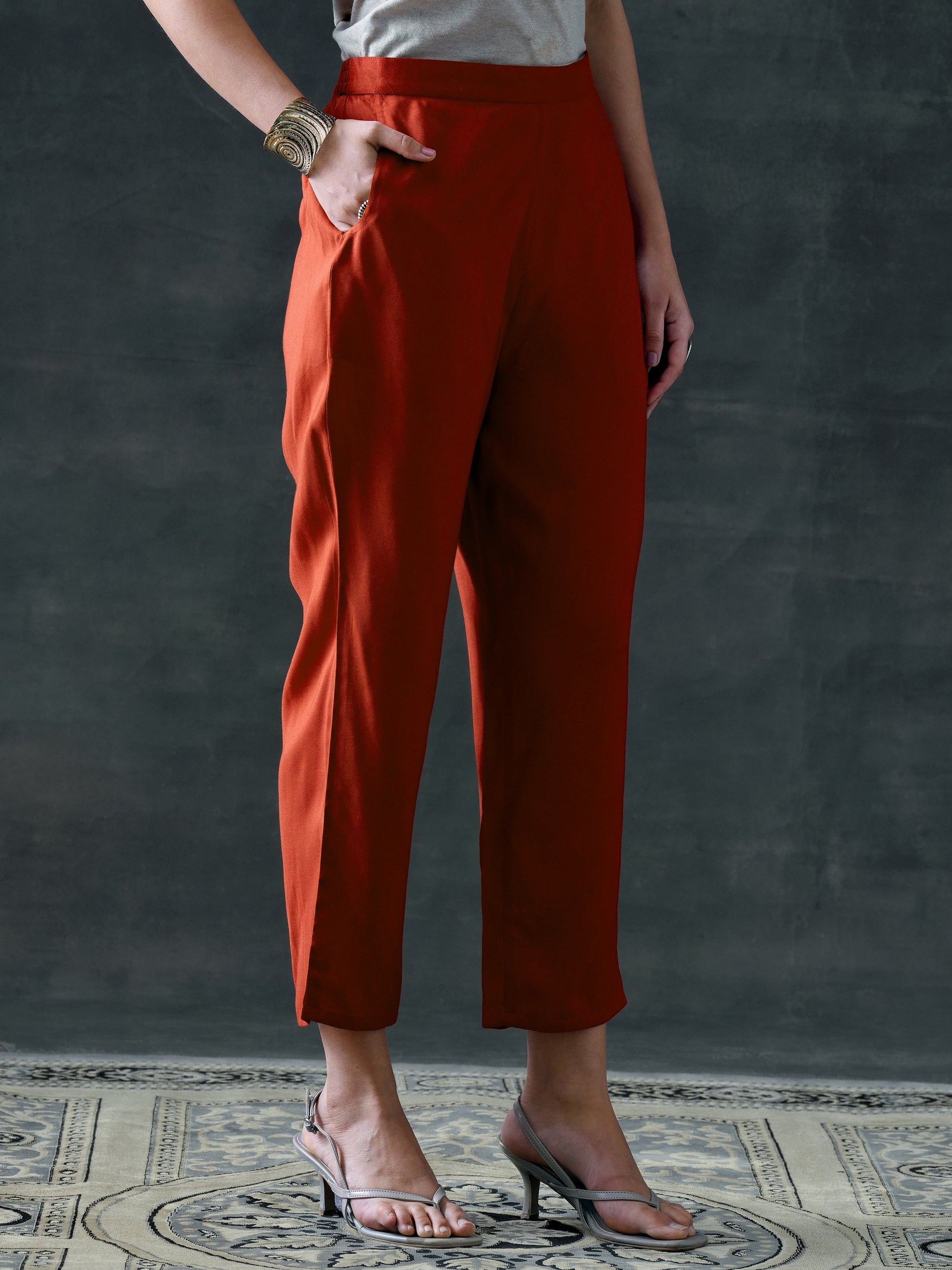 Rust Printed Silk Blend Straight Suit Set With Dupatta