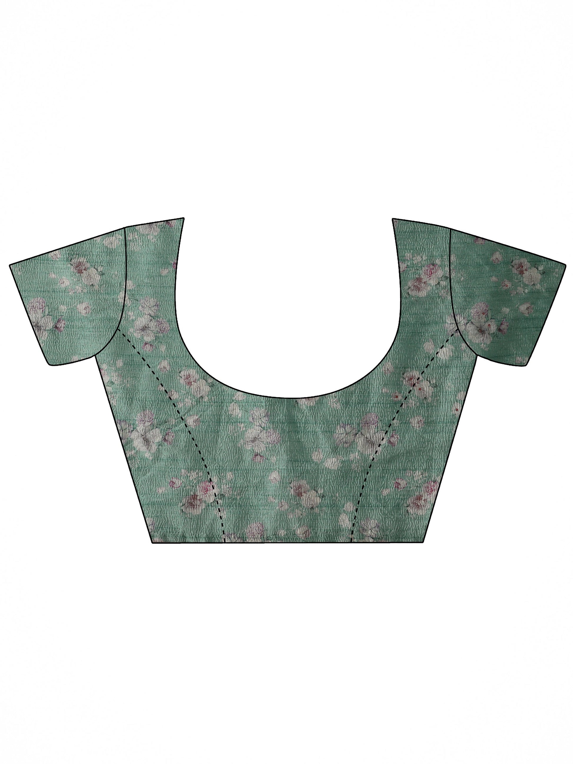 Our Sea Green Printed Silk Blend Saree Features Captivating Floral Print. Complemented With An Unstitched Blouse Piece. This Charming Saree Is Perfect For Festive Wear.