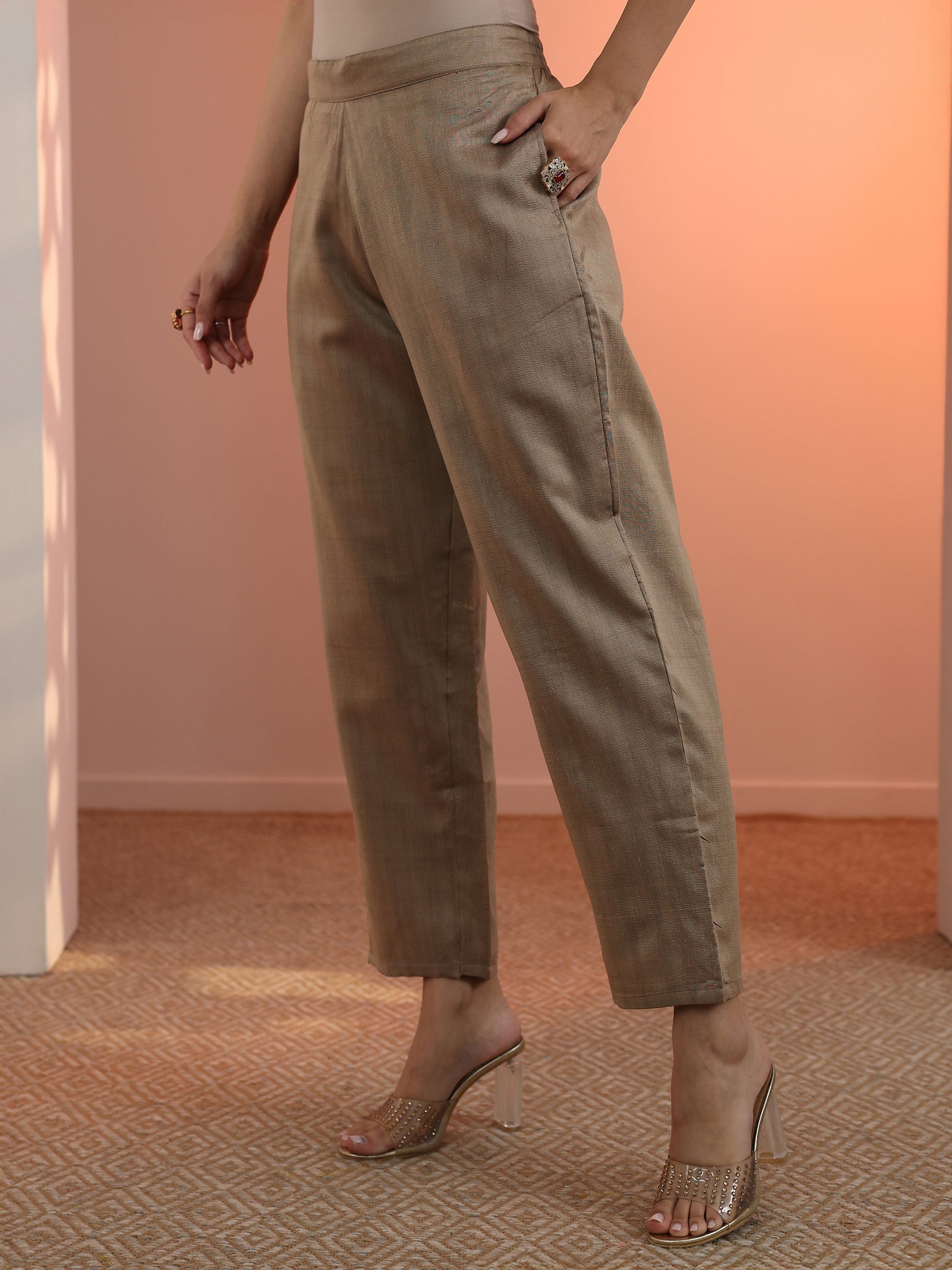 Tan Embroidered Silk Blend Straight Suit Set With Dupatta