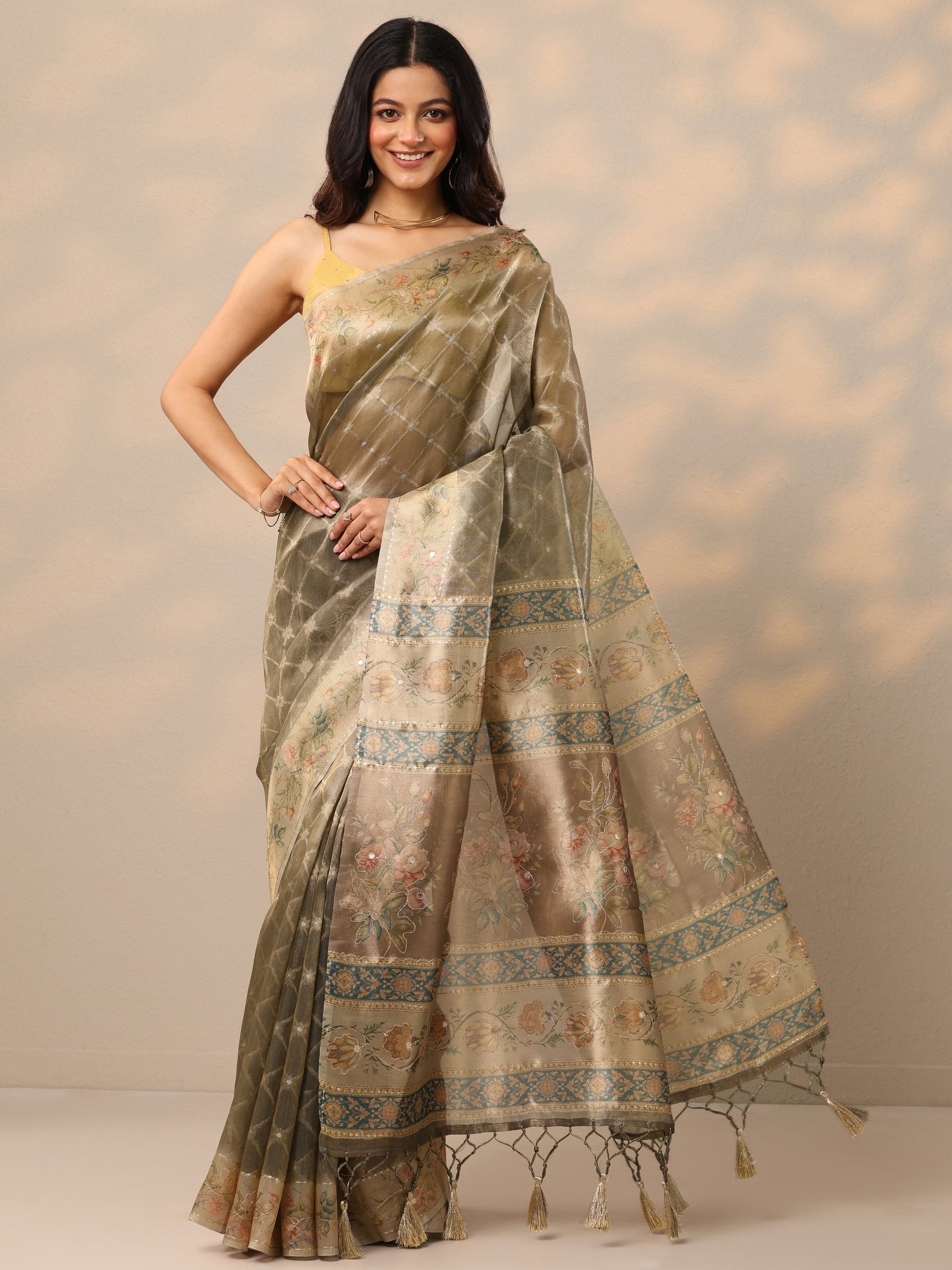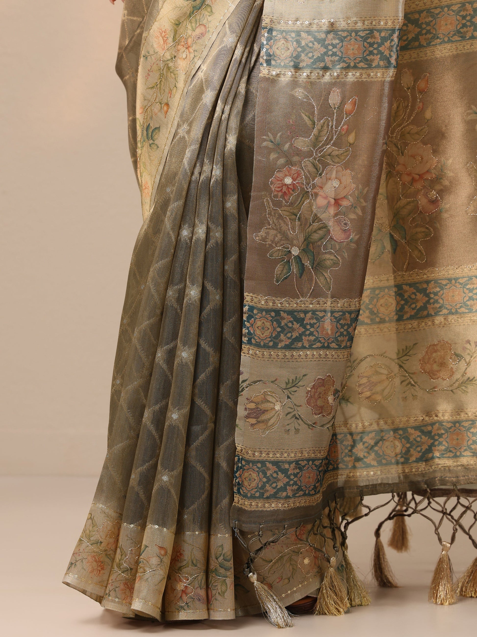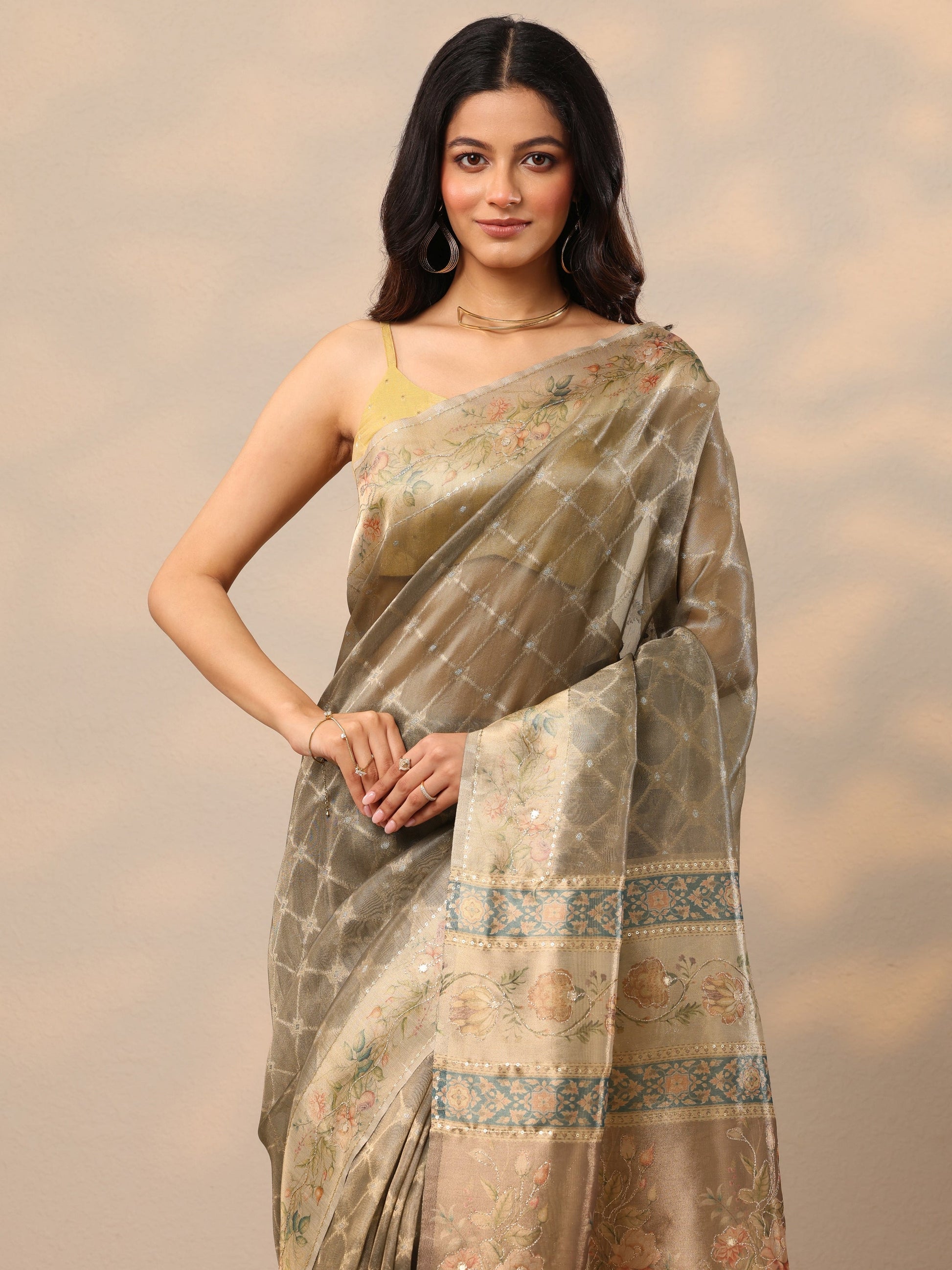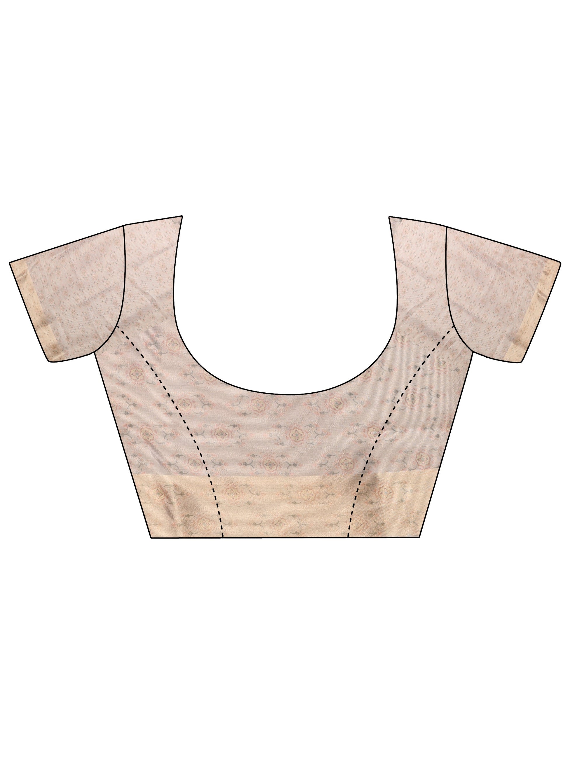 Tan Printed Nylon Sarees With Unstitched Blouse Piece