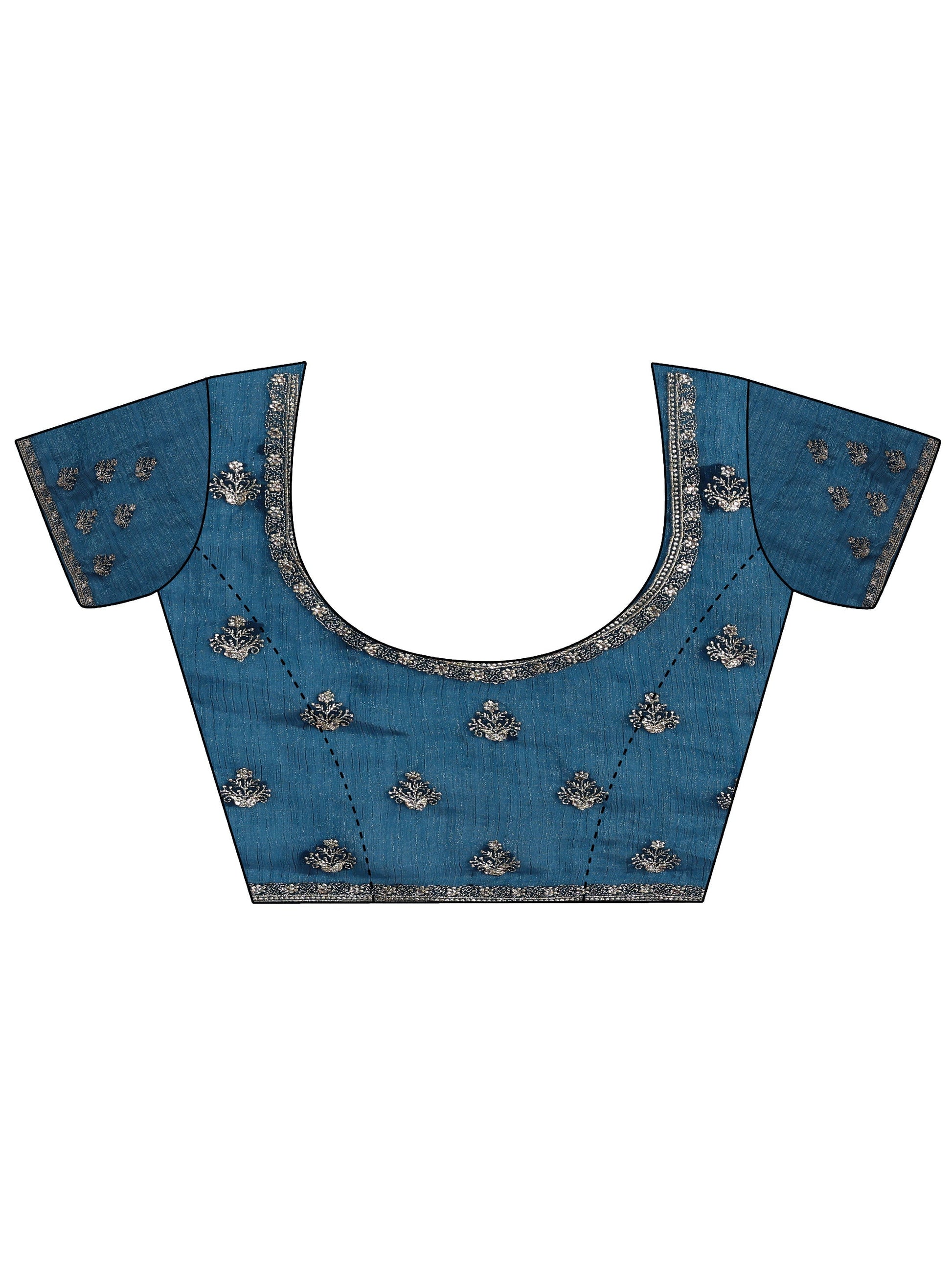 Teal Embroidered Chiffon Saree With Unstitched Blouse Piece
