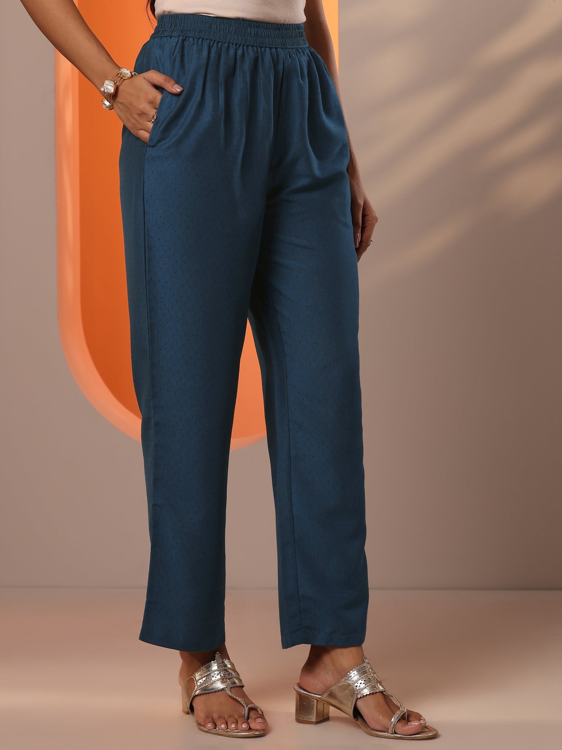 Teal Embroidered Silk Blend Straight Suit Set With Dupatta