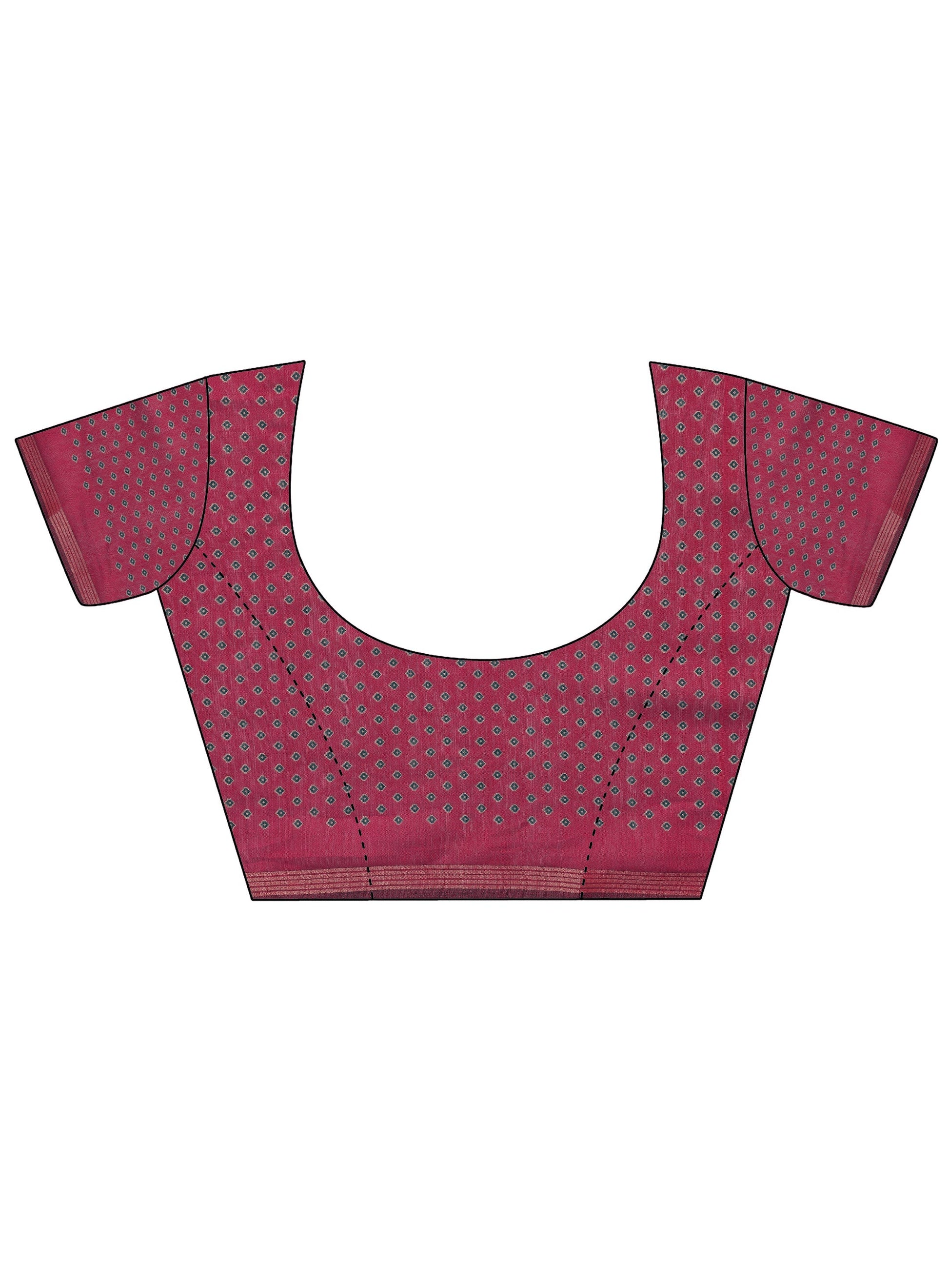 Teal Printed Cotton Saree With Unstitched Blouse Piece
