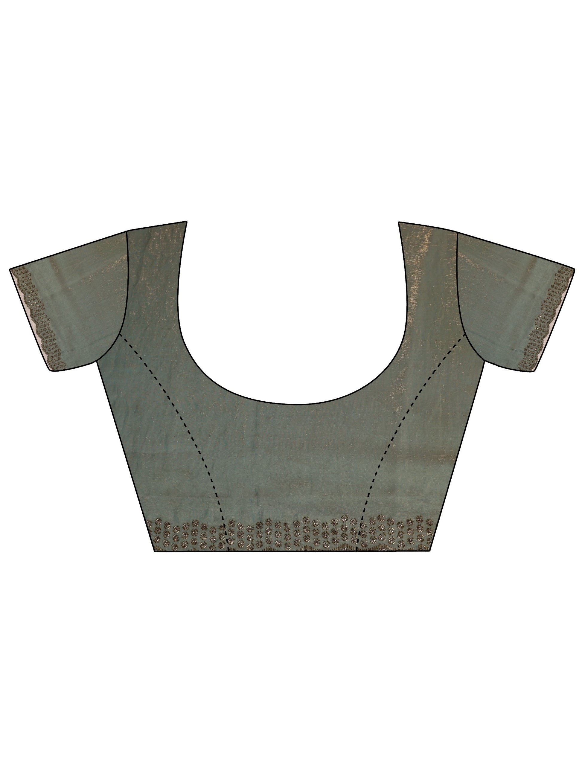Teal Solid Satin Saree With Unstitched Blouse Piece