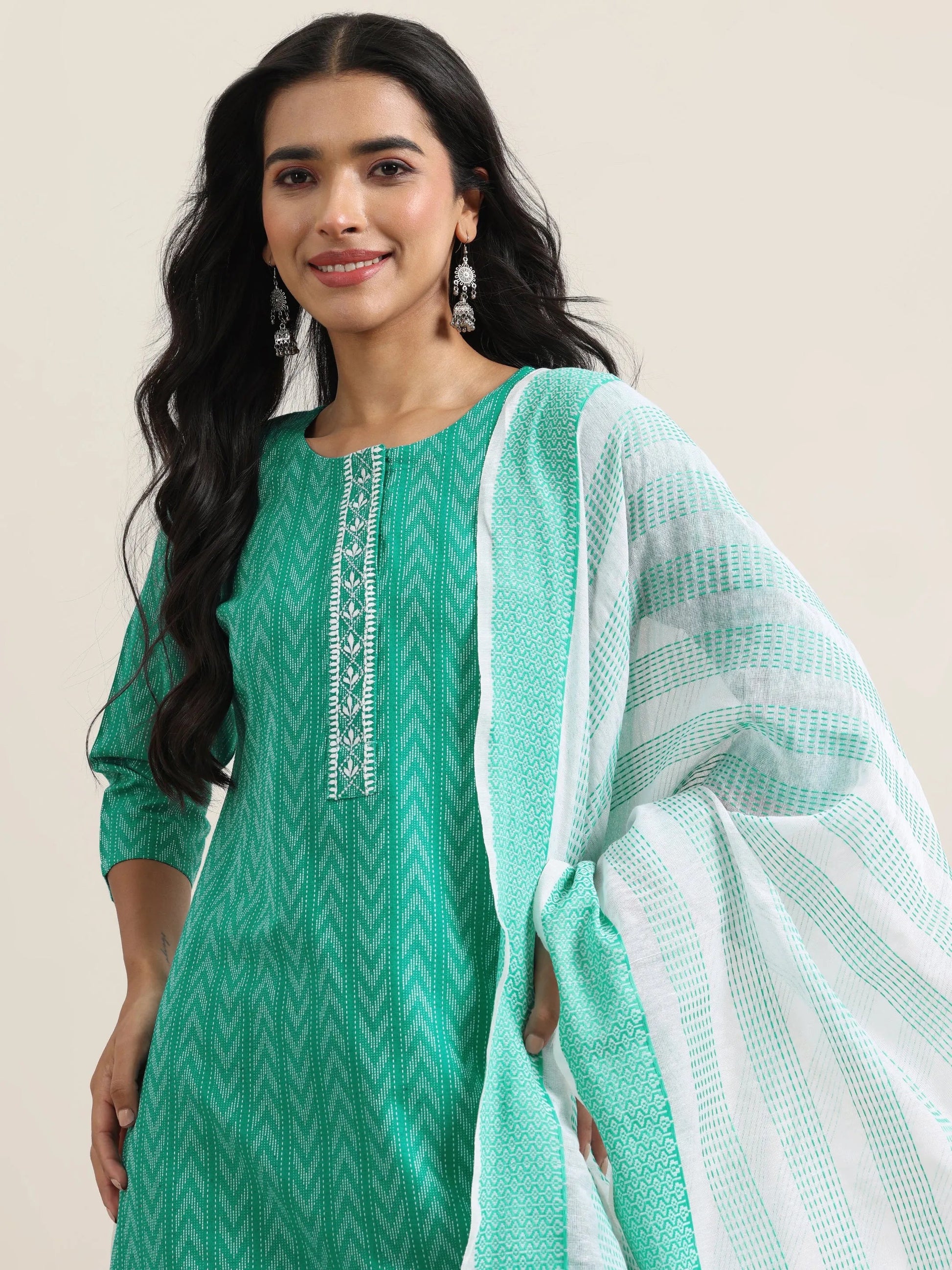 Teal Woven Design Cotton Straight Suit With Dupatta