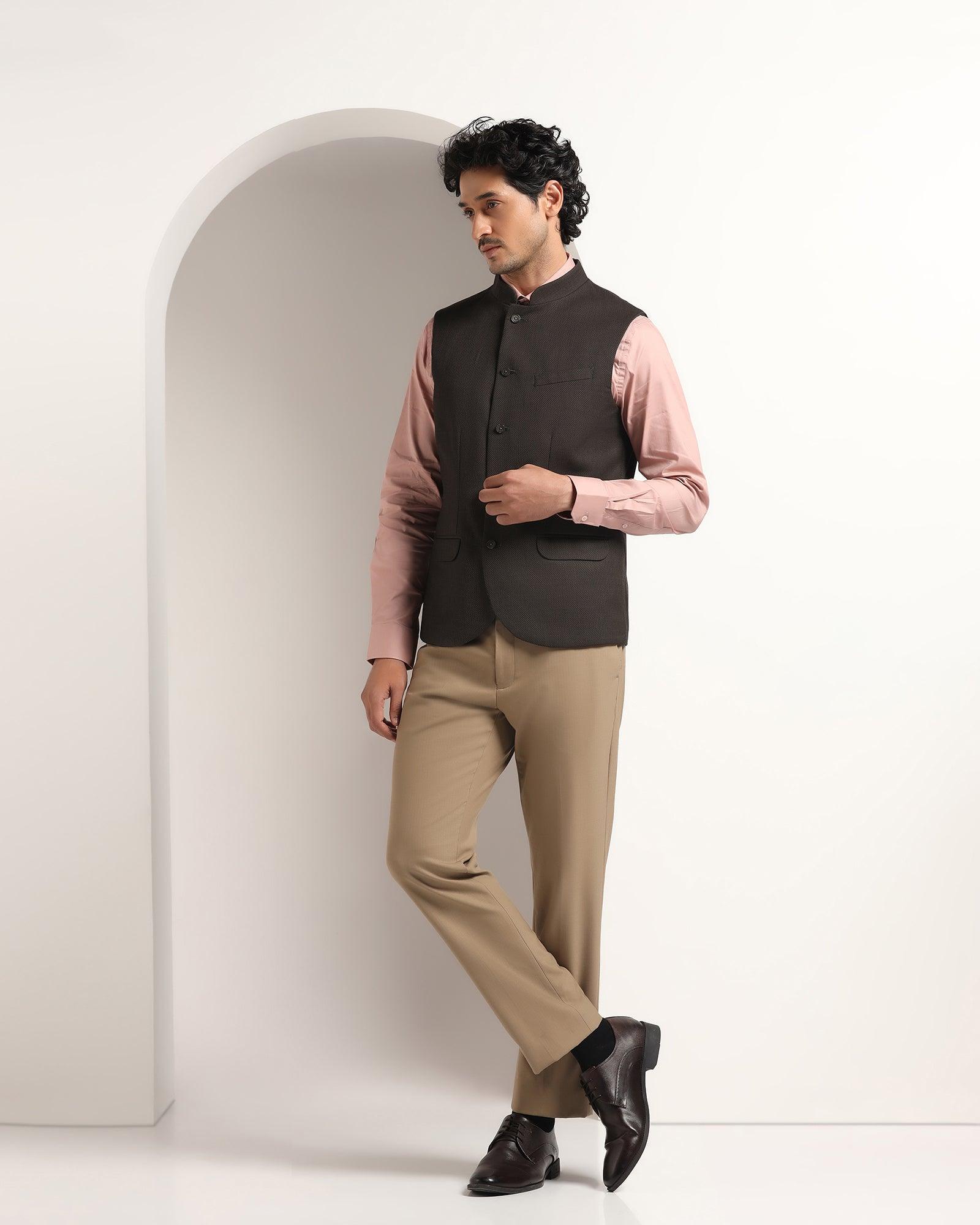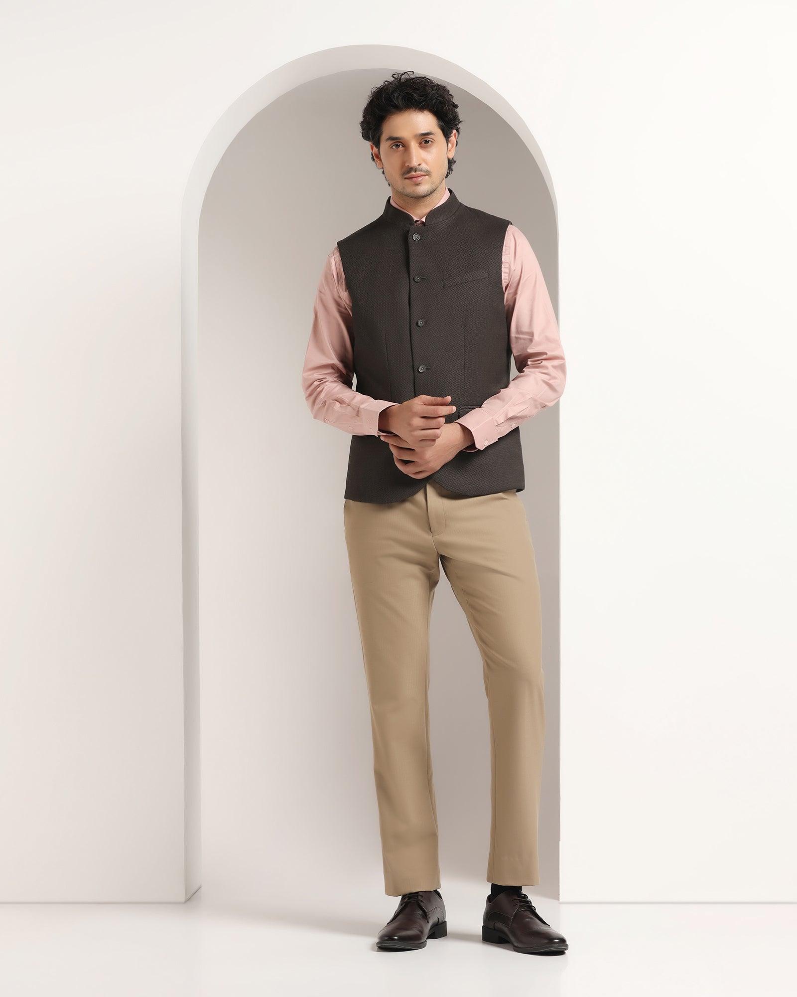 Bandhgala Formal Brown Textured Waistcoat - Kafka