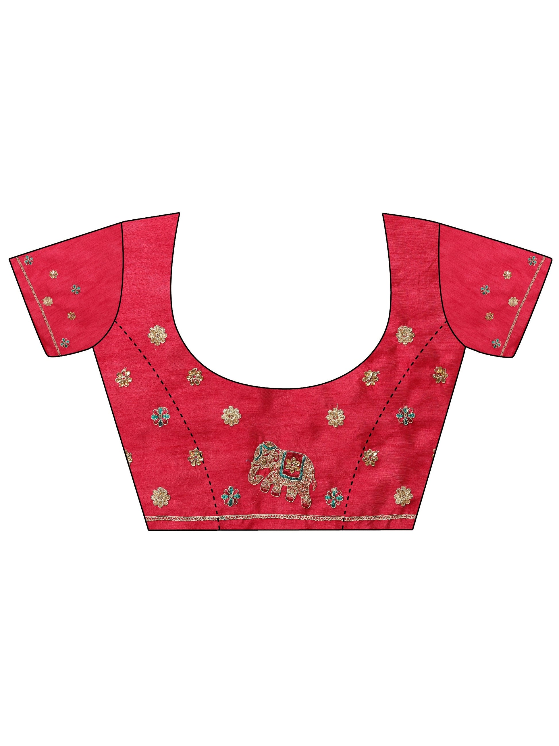 Turquoise Blue Embroidered Chinon Saree With Unstitched Blouse Piece