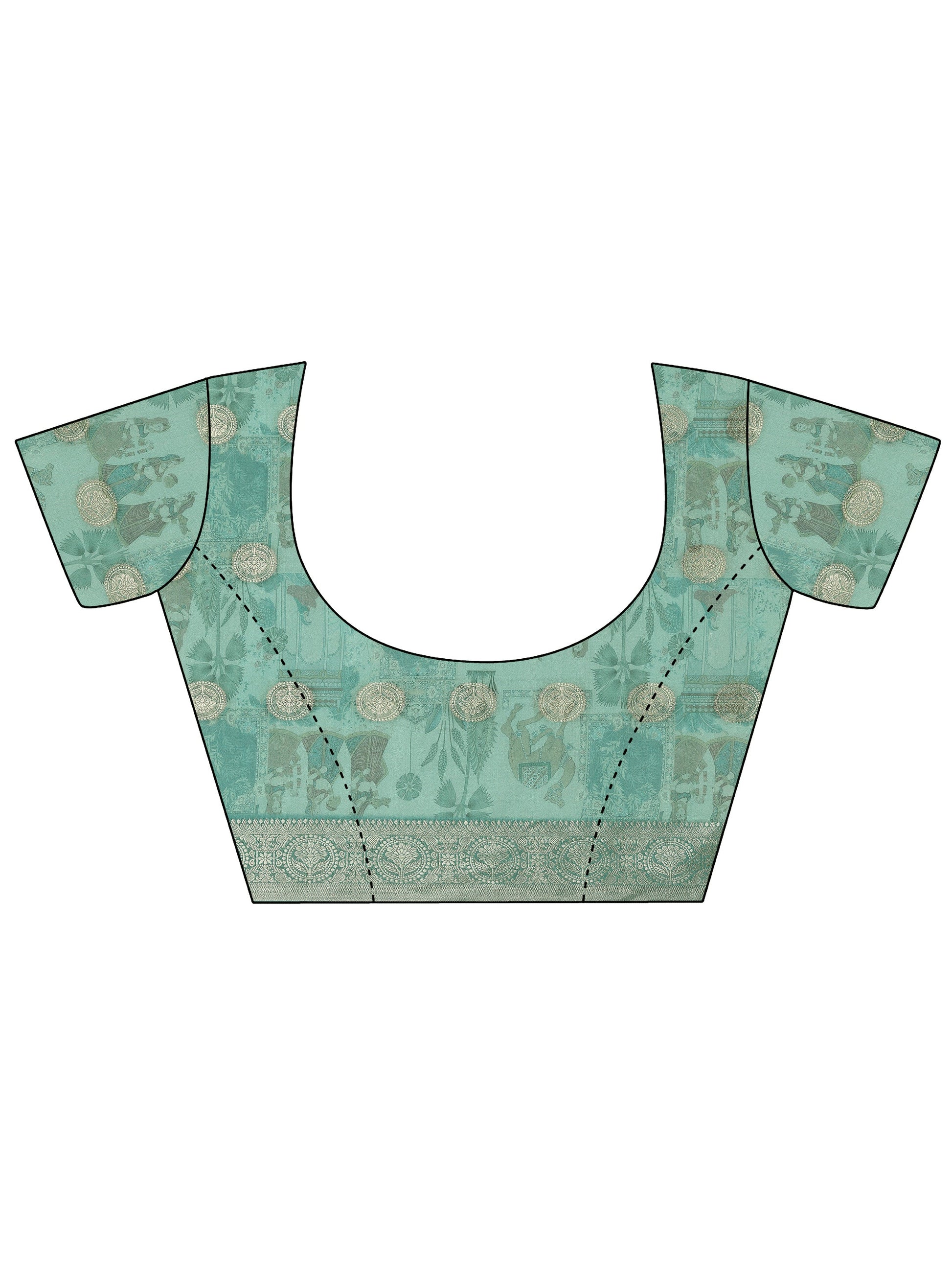 Turquoise blue Printed Silk Blend Saree With Unstitched Blouse Piece