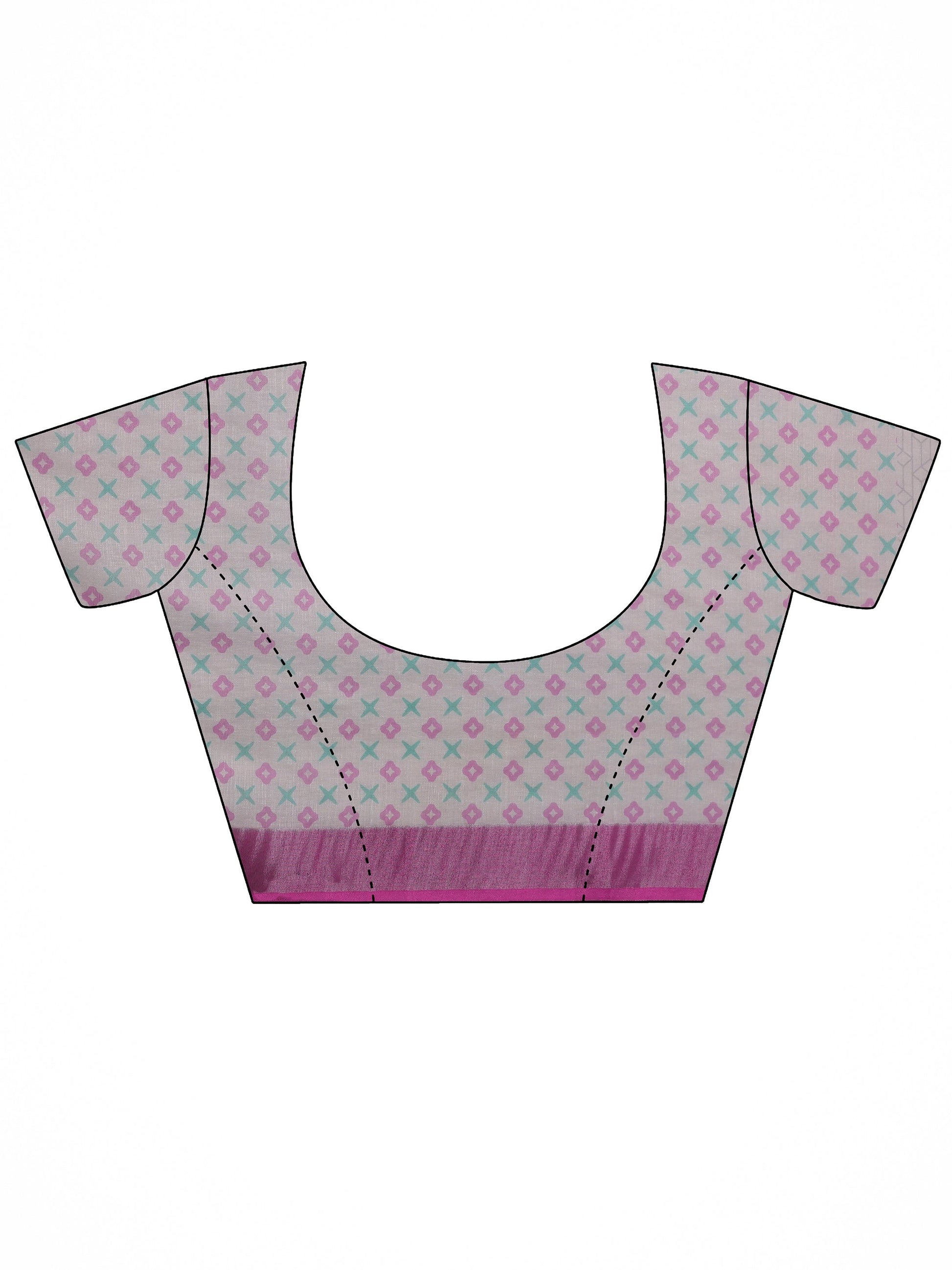 Our Pink Printed Cotton Blend Saree Features Captivating Floral Print. Complemented With An Unstitched Blouse Piece. This Charming Saree Is Perfect For Festive Wear.