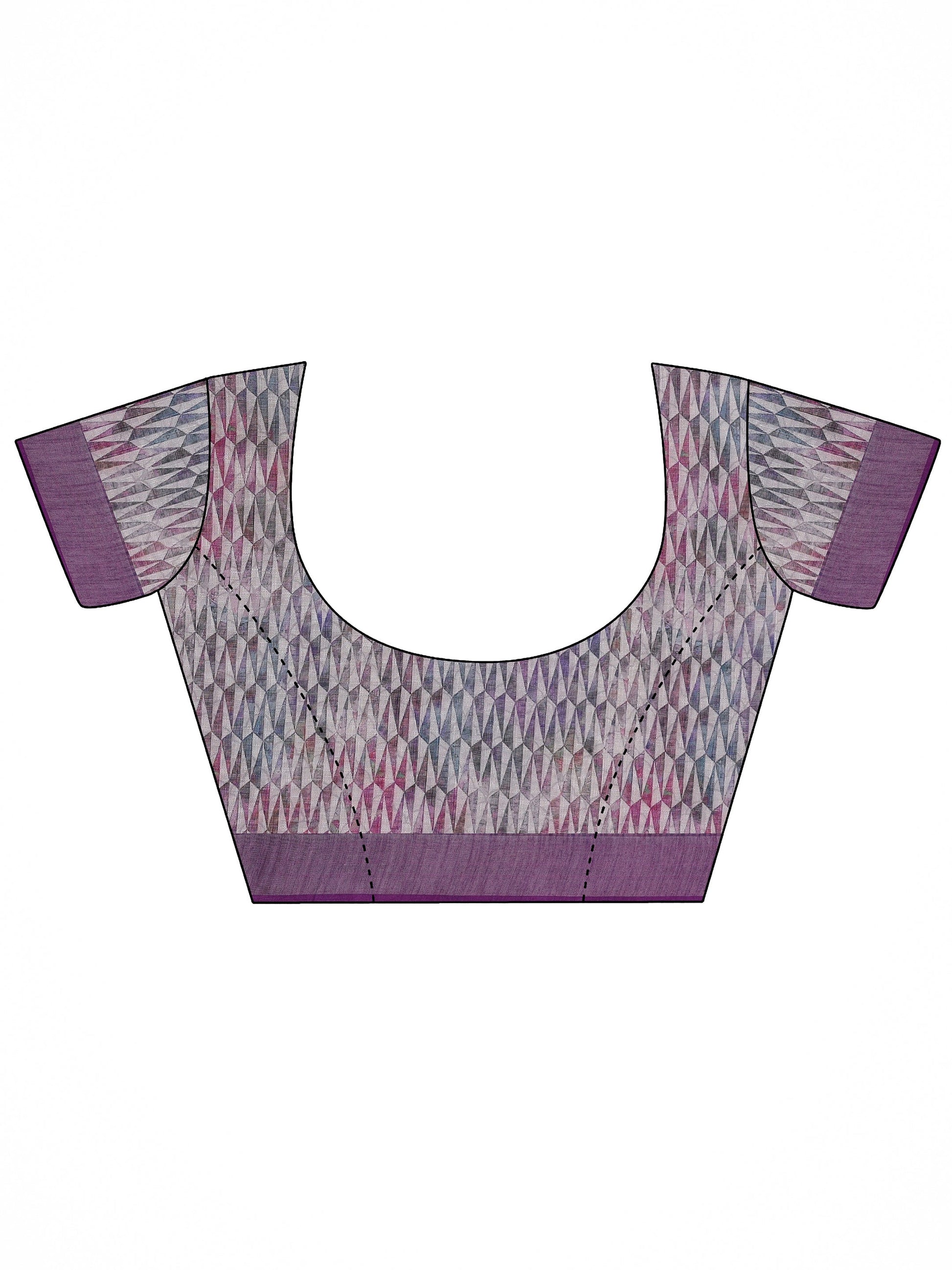 White Printed Cotton Blend Saree With Unstitched Blouse Piece