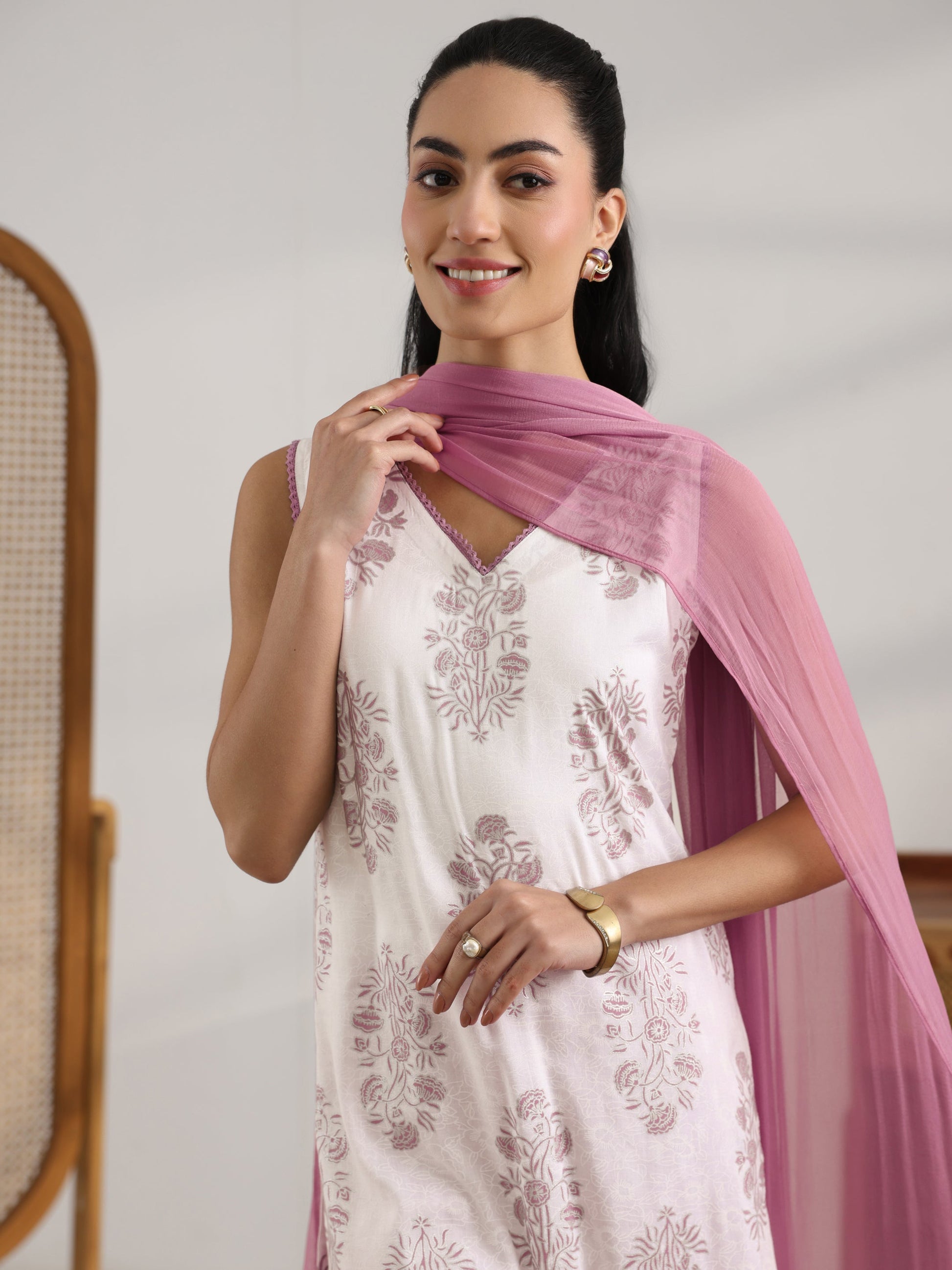 Our 3-piece White Rayon Straight-Fit Kurta Set features a Round Neckline and statement yoke. Complemented with Straight Pants with a Partially Elasticated waistband and 2 pockets, and a Solid dupatta. Adorned with Floral Printed accents, this style is perfect for Casual wear.