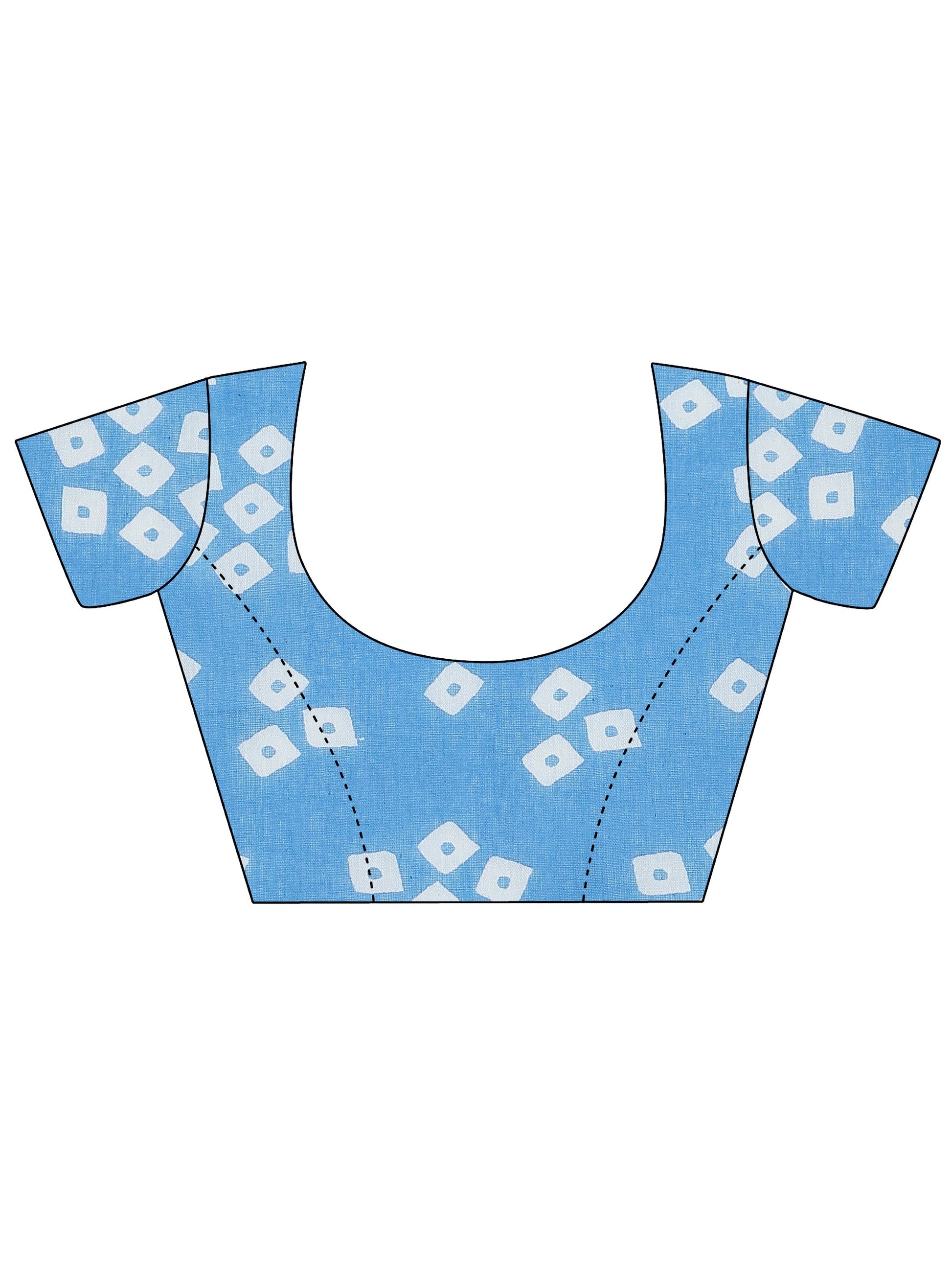 Yellow Printed Cotton Saree With Unstitched Blouse Piece