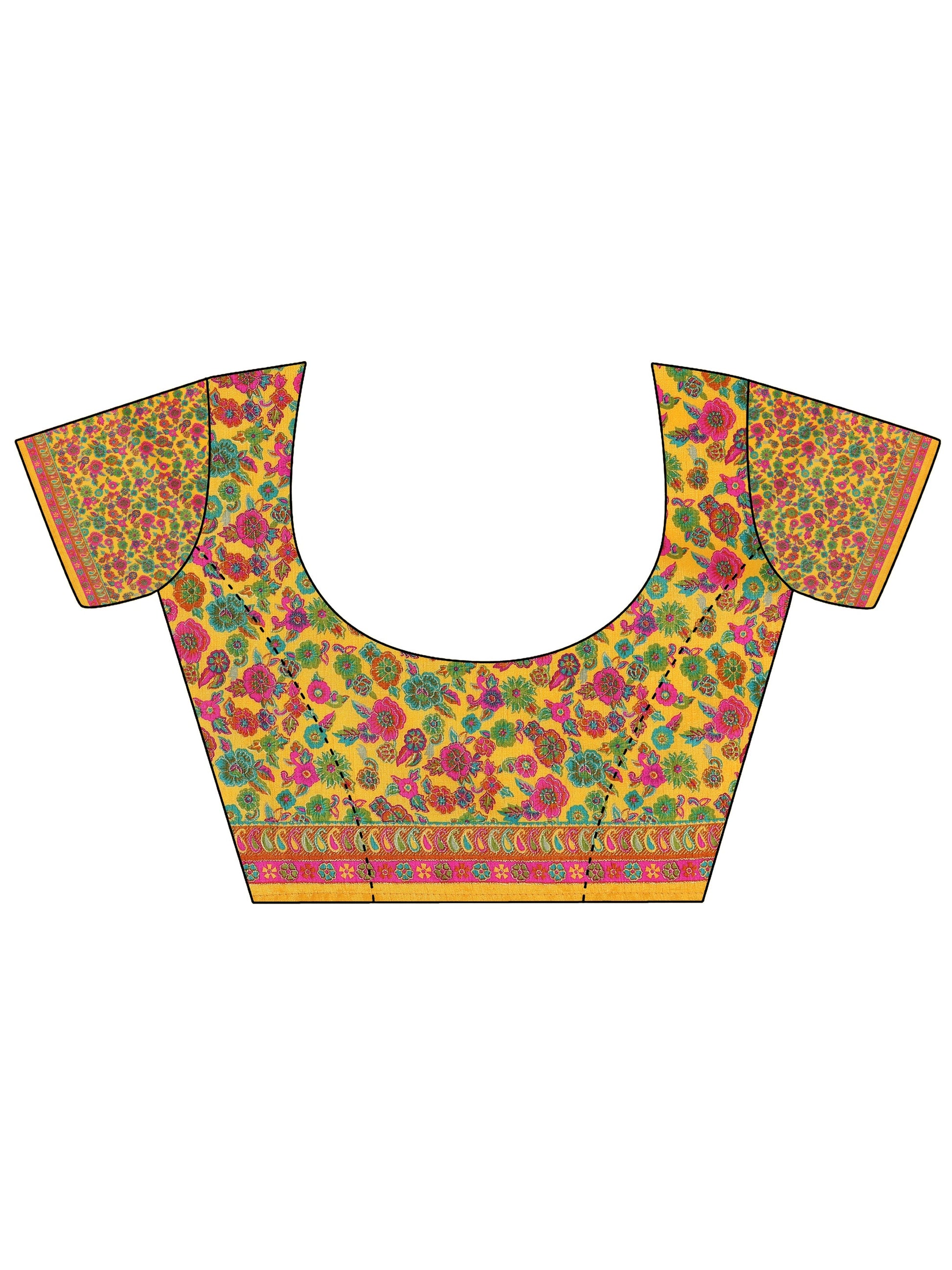 Our Yellow Printed Silk Blend Saree Features Captivating Floral Printed Design. Complemented With A Unstitched Blouse Piece. This Charming Saree Is Perfect For Festive Wear