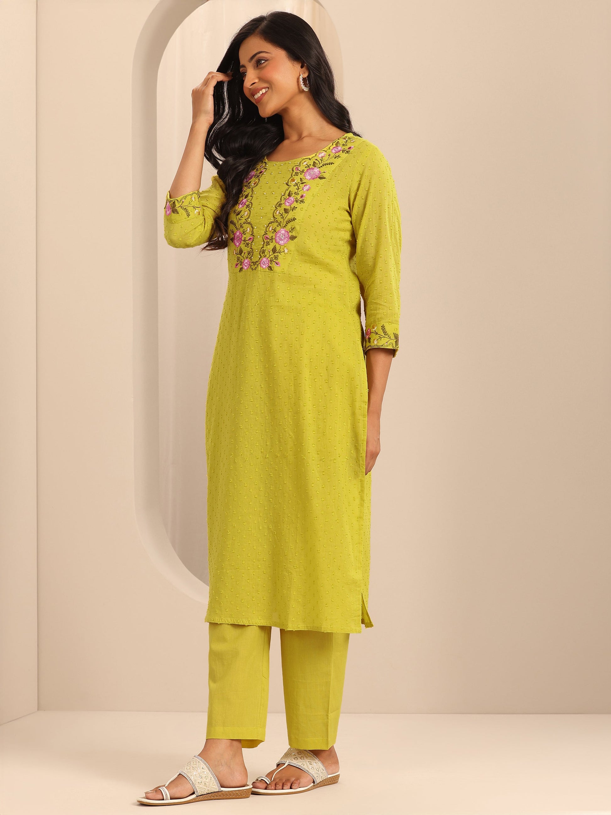 Yellow Yoke Design Cotton Straight Suit Set With Dupatta